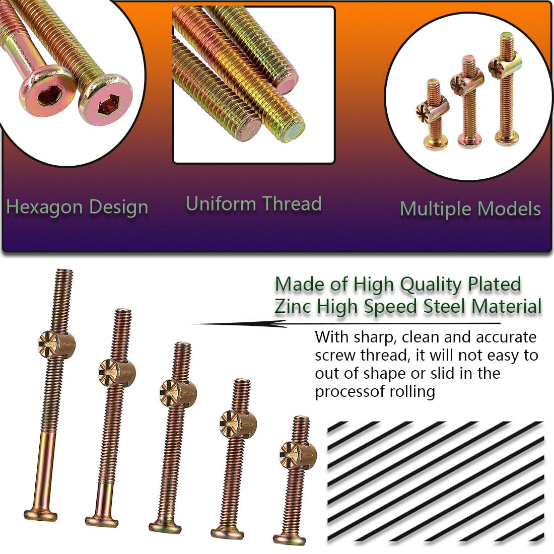 Product Type: The Crib Hardware Replacement Kit is made from High precision carbon steel material M6 hex socket head cap screws bolts and High Quality Zinc Plated barrel nuts assortment kit.