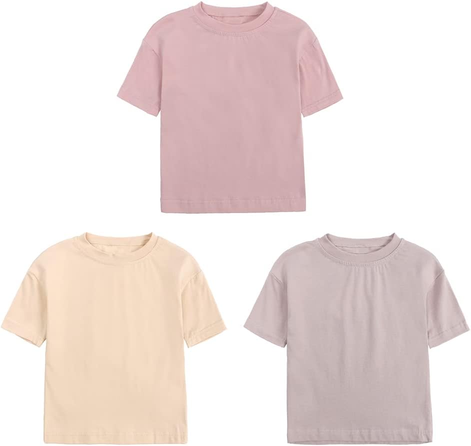Baby Boys Girls Solid T-Shirts Crew Neck Short Sleeve Casual Tops Toddler Kids Summer Cotton Tees