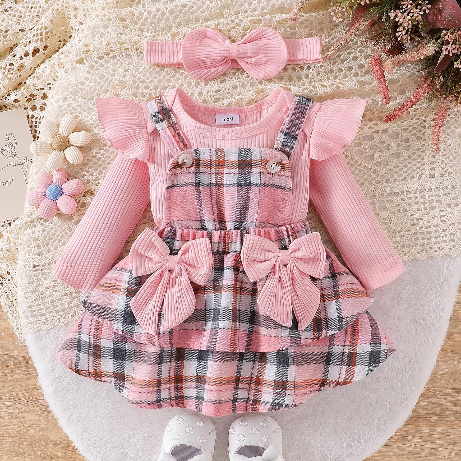 Item model number : HS Baby Plaid Dress Set Apricot 0-3M