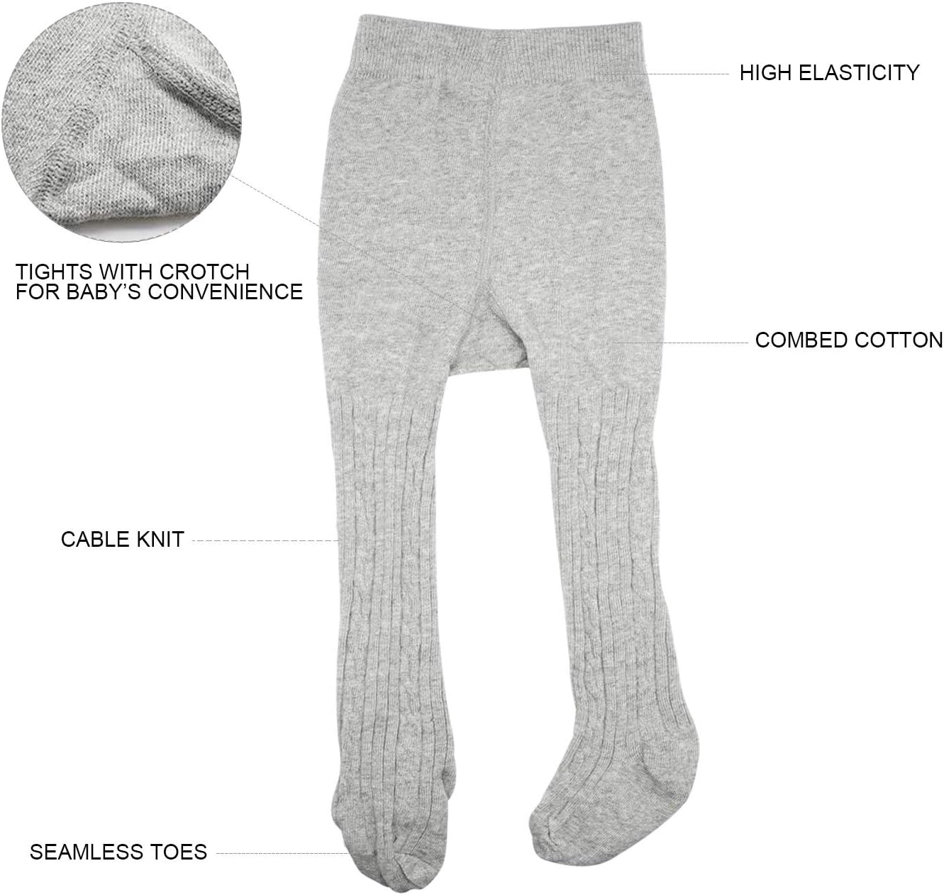 White/ black/ pink/ purple/ gray/ dark gray. Just choose the most suitable cable tights for your little ones!