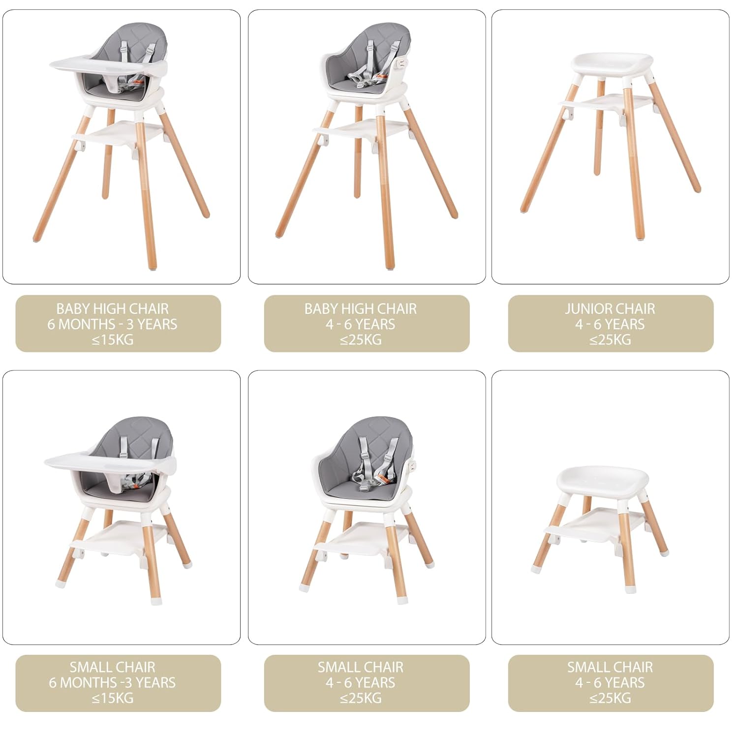 6 In 1 Baby High Chair: This multifunctional highchair can be easily converted into various modes: full size baby high chair, small dining chair, toddler chair with 2 heights, counter-height stool or small stool. It is designed to help your toddler in all growing stages