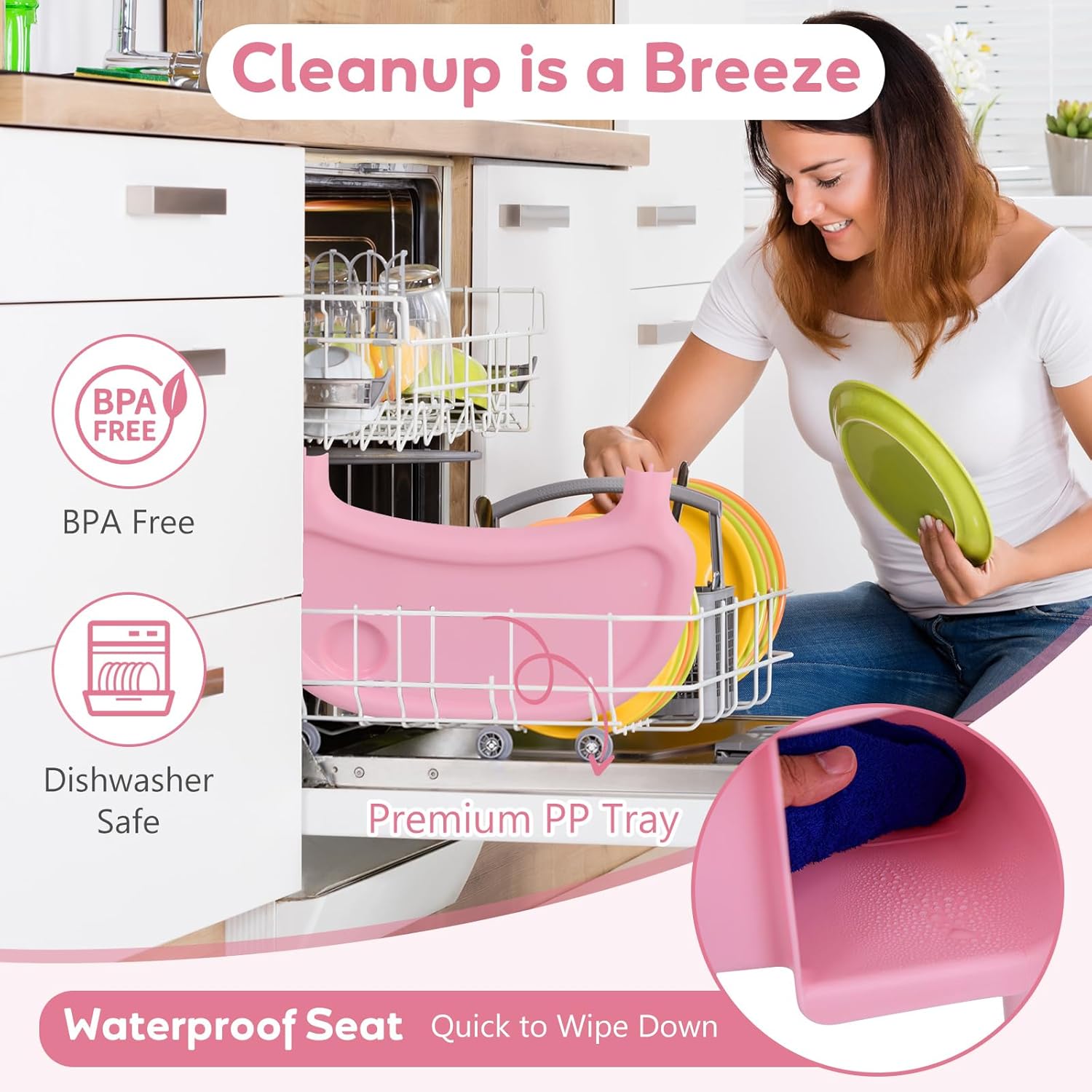 Certified Safety for Peace of Mind: Parents can rest assured with the peace of mind that this baby highchair complies with ASTM and CPSIA. Made of BPA-free PP material, the tray is ideal for feeding or eating and is dishwasher safe for easy cleaning.