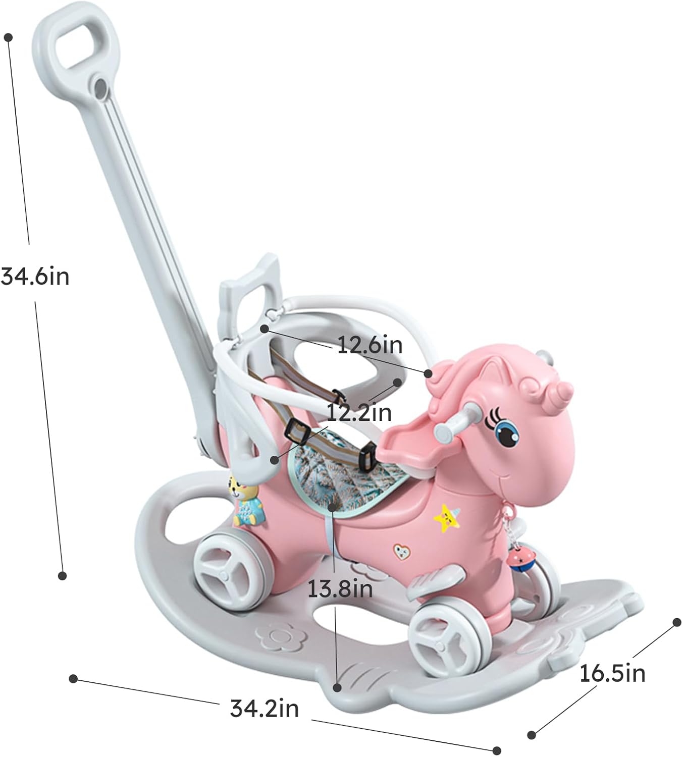 –Rocking Horse: The spacious seats, high backrest, and detachable pedals will provide your child with a comfortable sitting and riding experience. There is also a sound button on the left side, allowing children to enjoy more fun.