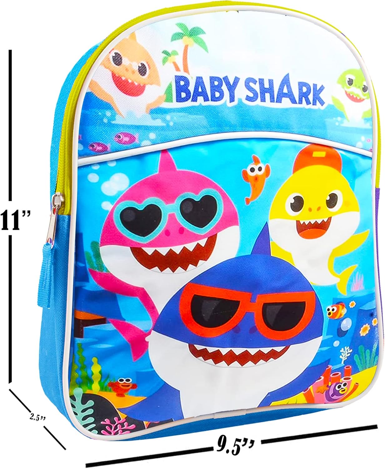 This deluxe mini Baby Shark backpack set features bold colorful artwork depicting your favorite Baby Shark characters.