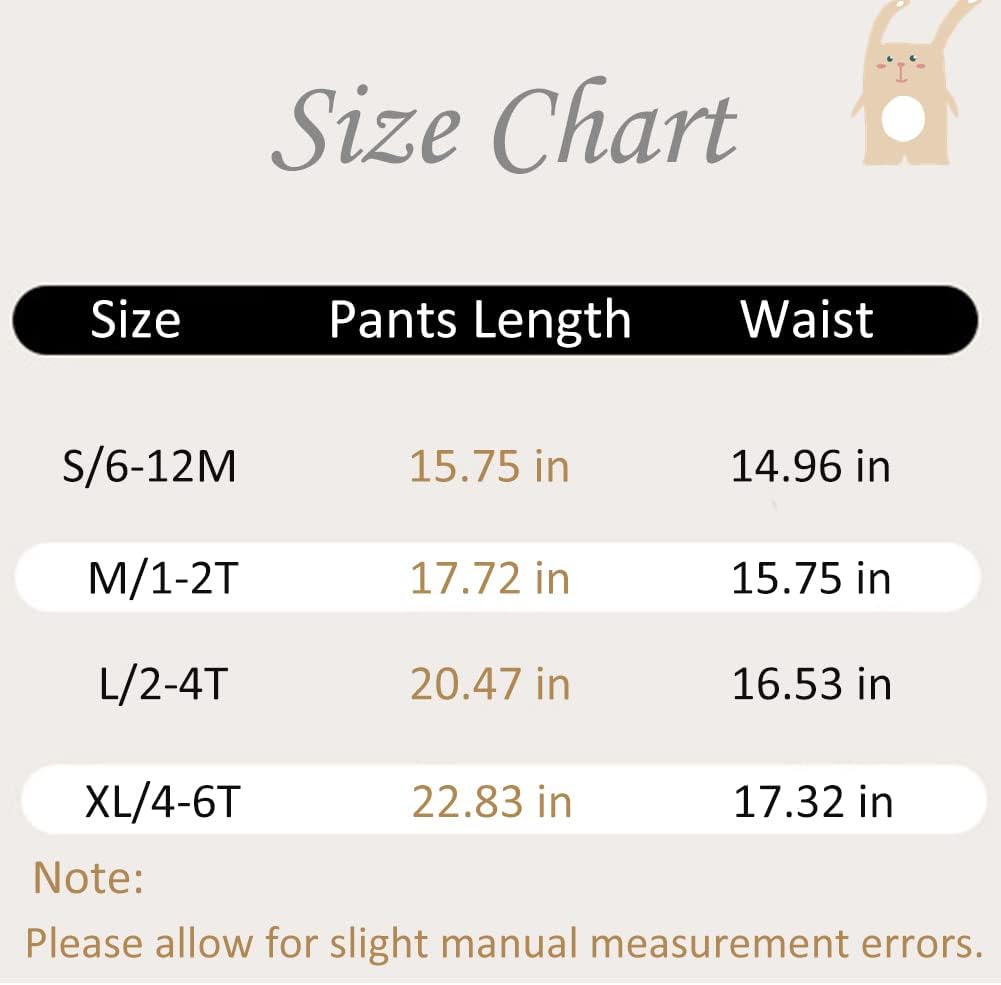 Size: Size S for 6-12 Months, Tights Length – 15.75 inch/40cm;Size M for 1-2 Years, Tights Length – 17.72 inch/45cm;Size L for 2-4 Years, Tights Length – 20.47 inch/52cm, Size XL for 4-6 Years, Tights Length – 22.83 inch/57cm.Easy to Wash: Hand wash is recommended, or using laundering bag when machine wash.