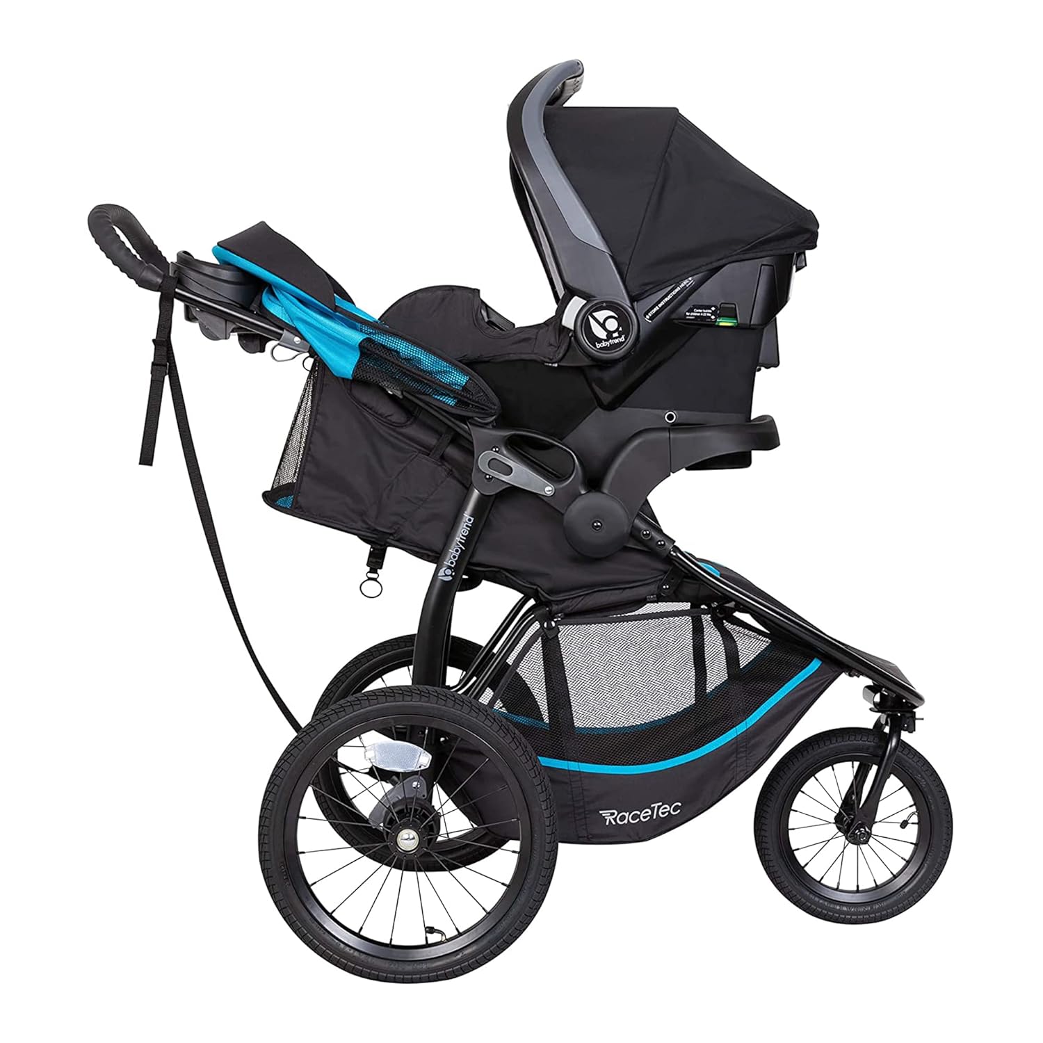 The Baby Trend® Expedition® Race Tec™ Jogger provides comfort, quality, and style for you and your little one. Mom and dad will enjoy Parent Premiums with the ergonomic rubber handlebar, extra-large basket with wide opening to hold key essentials, and the modern designed parent console with cell phone positioner and two deep cup holders. Your child will appreciate Comfort Cabin including the removable extra-long canopy with UPF 50+ protection and 5-point safety harness with comfort shoulder strap covers, and 2 cup holders on the child tray. The deluxe fabrics and multi-layered padding give your kiddos premium comfort. The padded seat also allows multiple reclining positions to ensure comfort and smooth rides. Our Expedition® Race Tec™ Jogger implements upgraded quick release front wheel that provides stability and safety when you jog. Now with this wheel design and the raised rubber handlebar, you and your little one can decide either you want to go off the beaten path or a quick morning jog. The trigger fold also makes the storage and transport much easier.