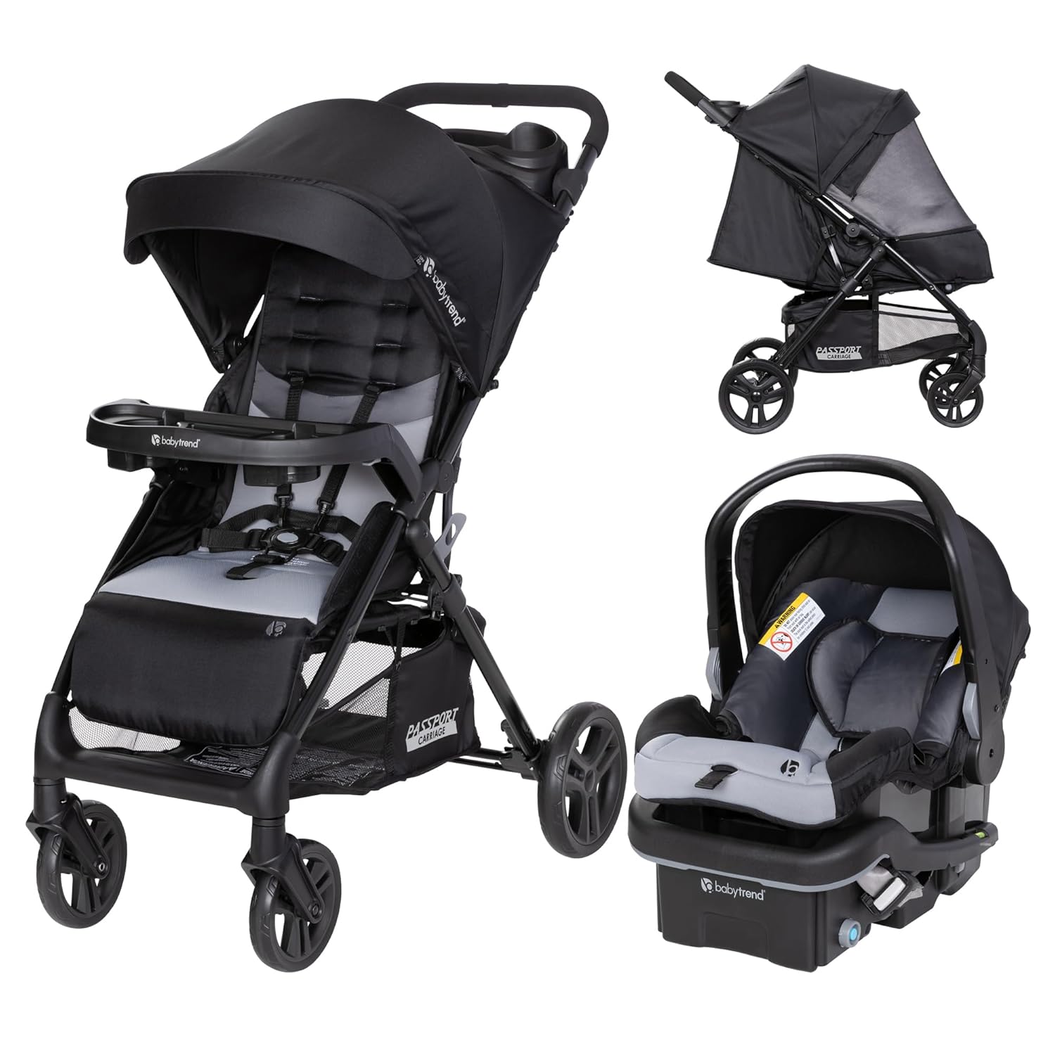 Whether it’s cozy or time for a stroll, Baby Trend’s got you covered! The Passport Carriage Stroller offers a carriage mode option that allows your baby to have the comfort of an in-home carriage wherever you go. With added snooze protection, a full zip mesh covering will shield your baby from outside factors to allow them a peaceful sleep even when out and about. Your little one will be as comfortable as possible in our Comfort Cabin, with a UPF 50+ sun protection canopy, a child’s tray, and plush fabrics. Included parent solutions with a parent tray equipped with two cupholders and a center compartment for easy accessibility to your essentials. This stroller also includes a large storage basket with front and rear access for all of your travel necessities. Quick and easy in-seat fold allows for easy travel and storage when not in use.