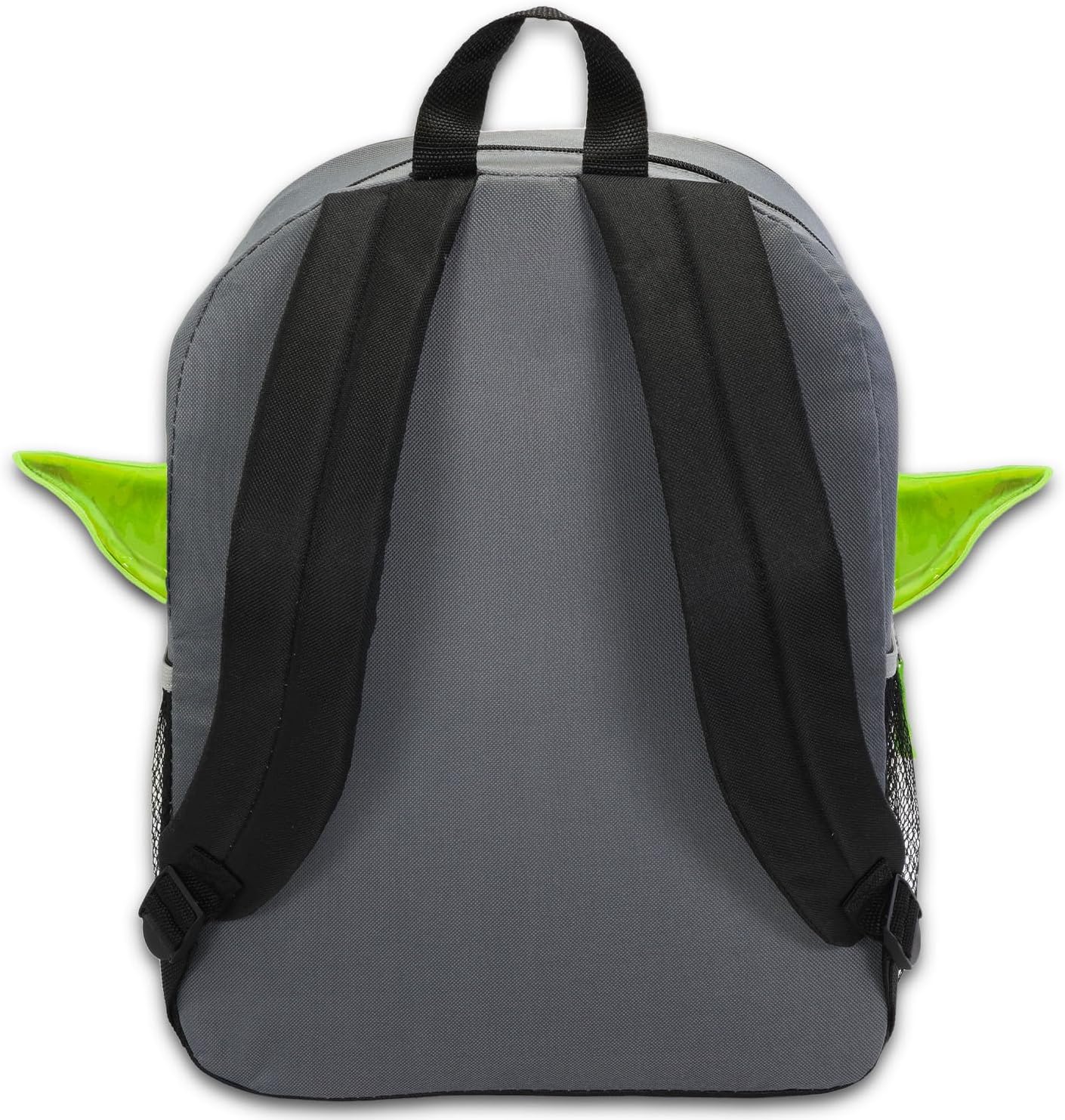This Baby Yoda backpack set includes a 16” backpack with adjustable shoulder straps, zip closure compartment, and top loop for hanging featuring colorful artwork of ”The Child” Grogu, also known as Baby Yoda with 3D ears.
