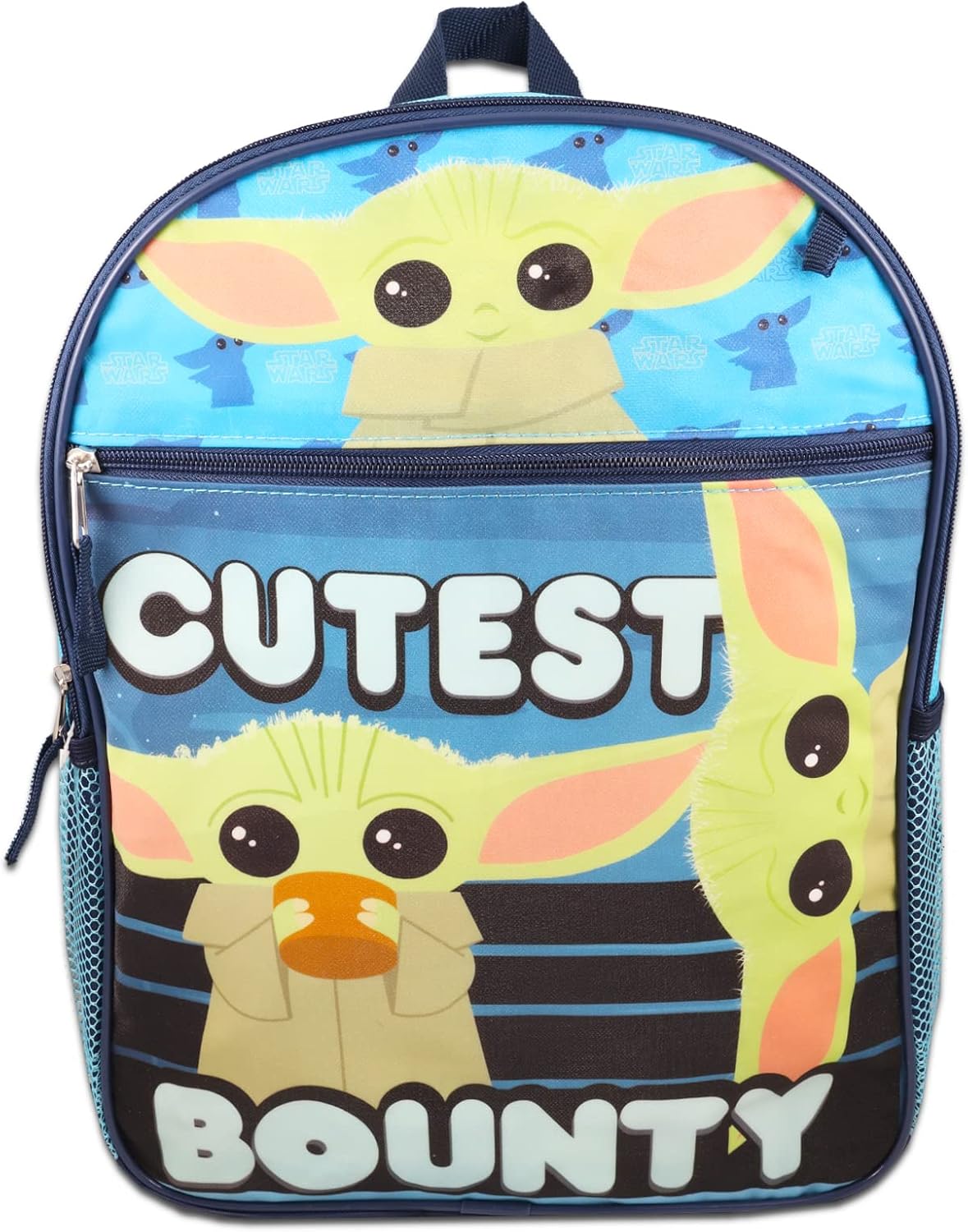 Officially licensed Baby Yoda backpack and lunch box set is perfect for kids of all ages, boys and girls alike. Star Wars school backpack set also comes with a Baby Yoda keychain, Star Wars stickers, and Star Wars bookmark.