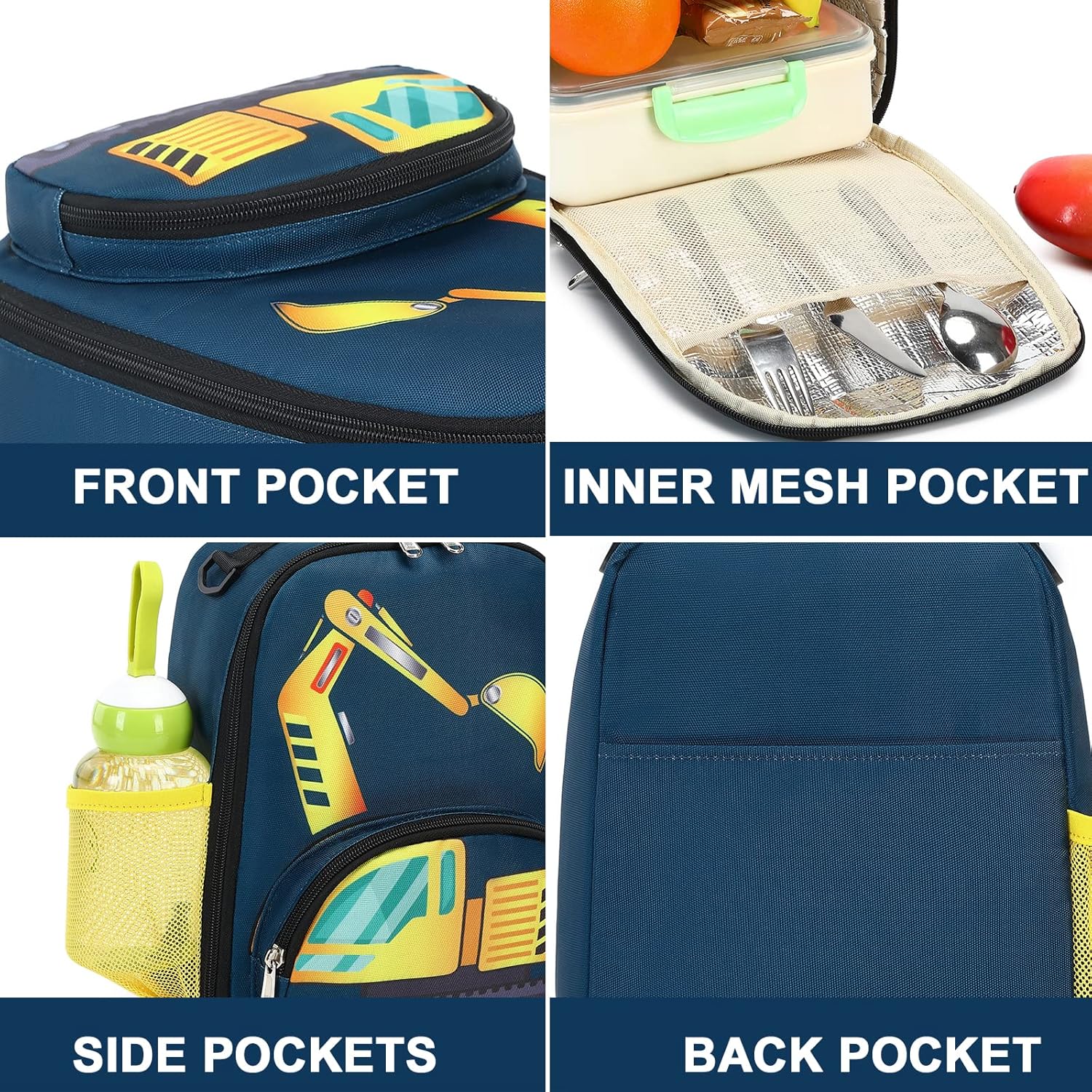 Cute kids backpack with matching insulated lunch bag for boys to go to school.