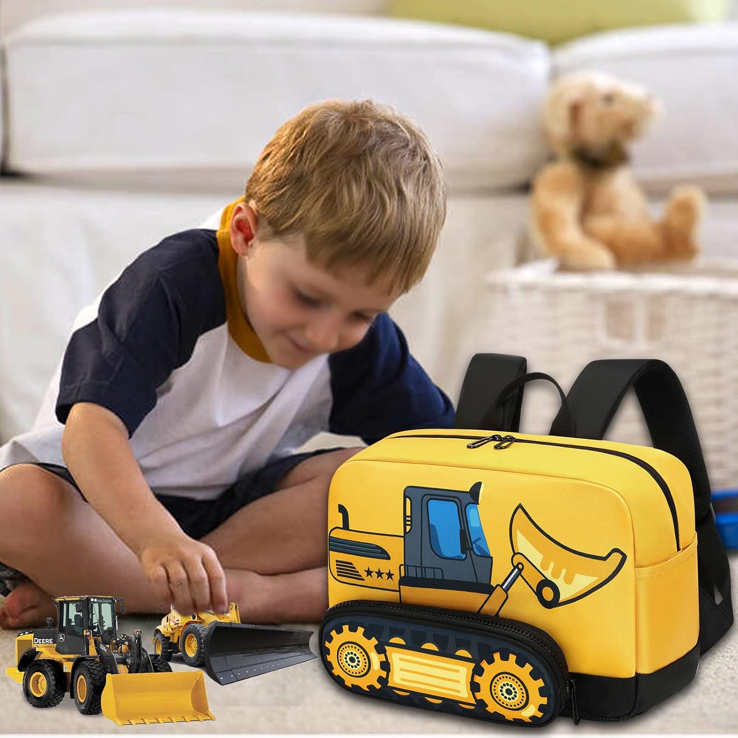 This toddler boys backpack measures 15 “x 11″ x 5.5” (L x W x H) , lunch box approx 10.2 “x 7.9 “x 11.4” (L x W x H). The backpack set is suitable for 3-6 years old.