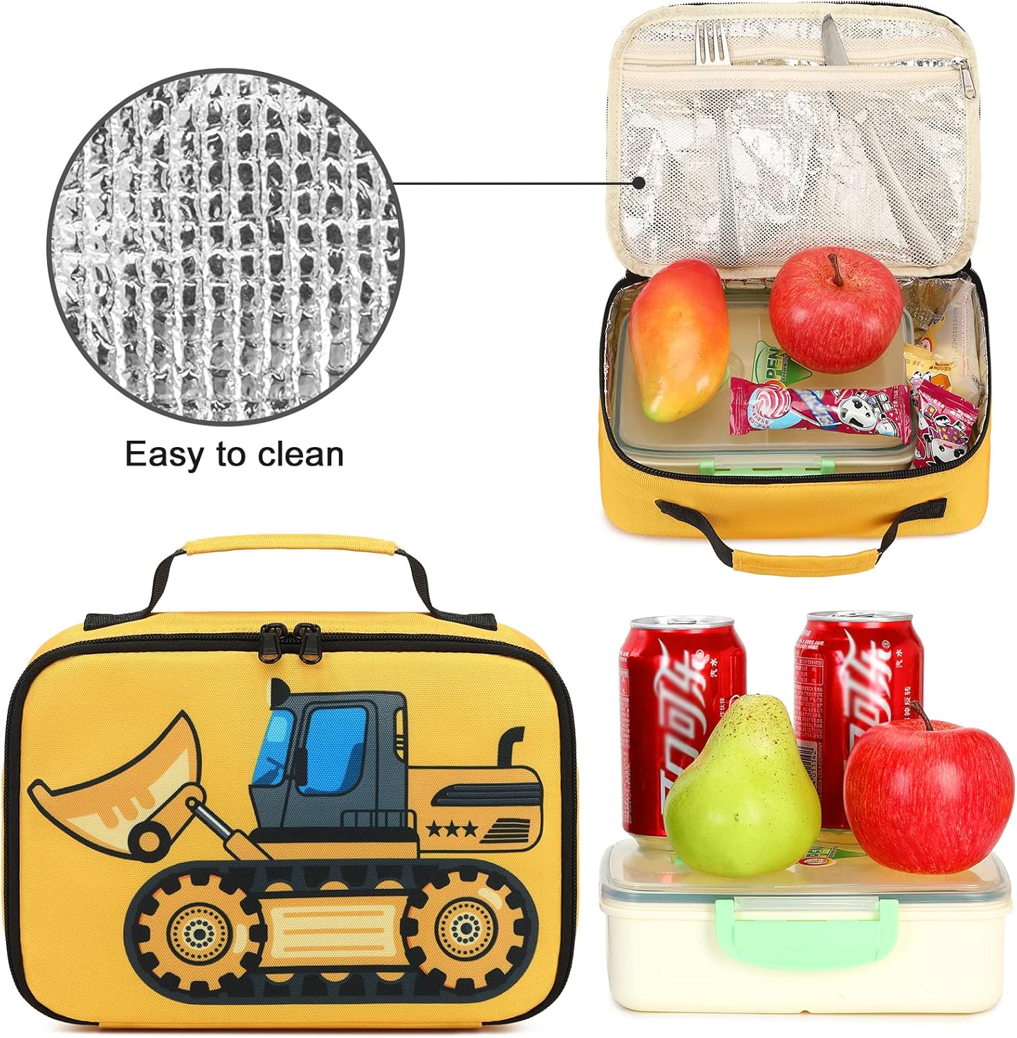 Cute kids backpack with matching insulated lunch bag for boys to go to school.