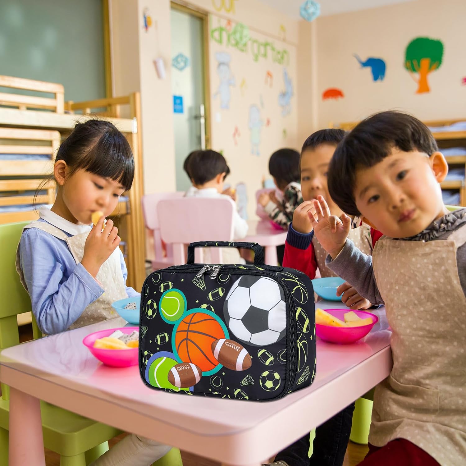 Kids lunchbox with shoulder strap is durable oxford material outside. The insulation material inside is safe aluminum foil, and can stay cold all day with ice packs, and easy to clean, just wipe it with a clean damp cloth.