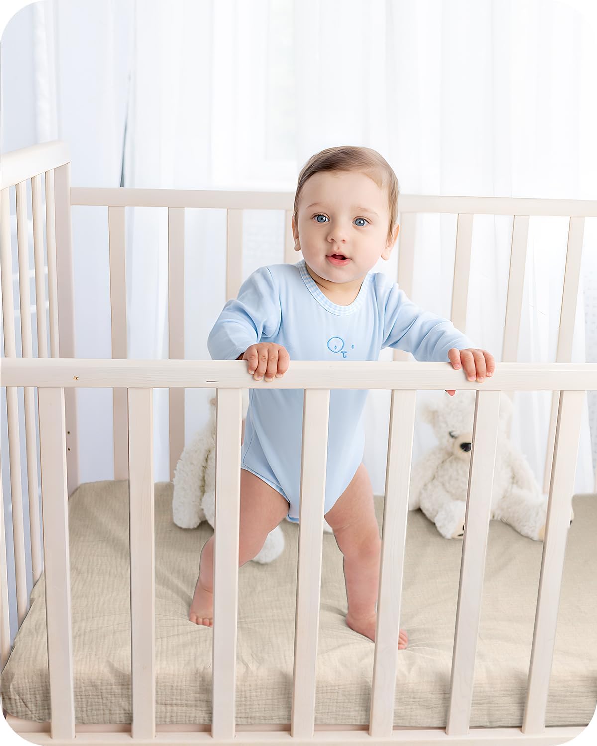 COZY AND GENTLE – Crafted from 100% pure muslin cotton, our Bearmoss crib sheets boast an incredible softness that won’t irritate your baby’s sensitive skin. The lightweight and breathable fabric stays comfortably cool, even in the heat.