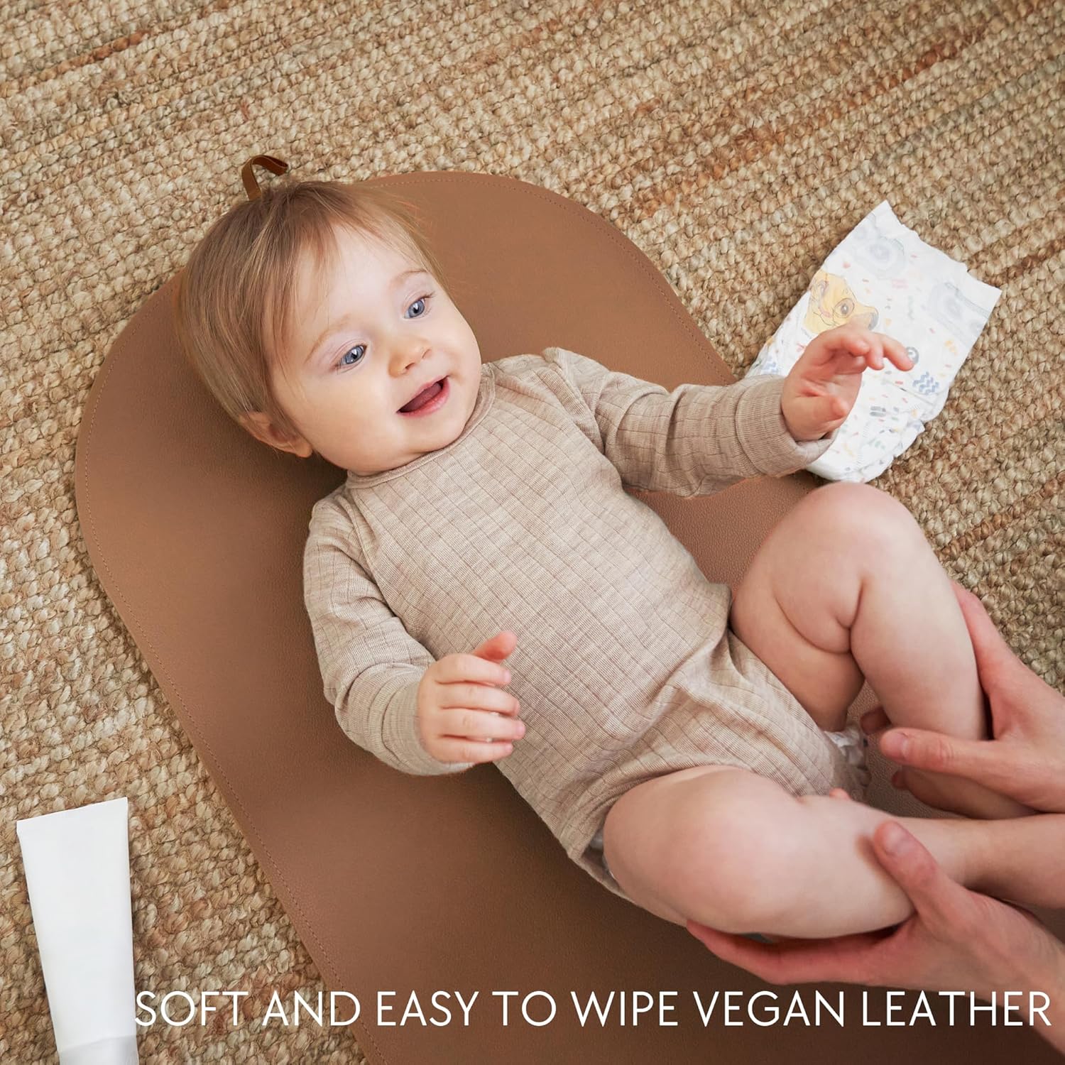 Premium Changing Mat – 100% Cozy & Baby-Safe: Crafted from durable, lightweight & waterproof vegan leather, the portable changing pad is not only a marvelous travel companion withstanding daily use, but also offers gentle comfort for your little bundle of joy