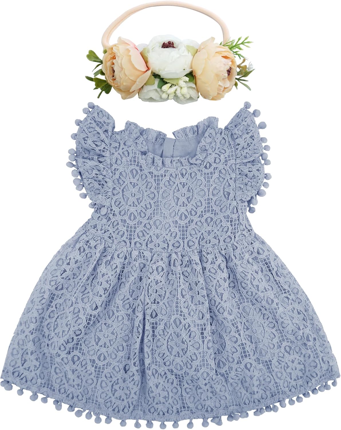 BGFKS Baby Girl Tutu Dress Elegant Lace Pom Pom Flutter Sleeve with Flower Headband Set