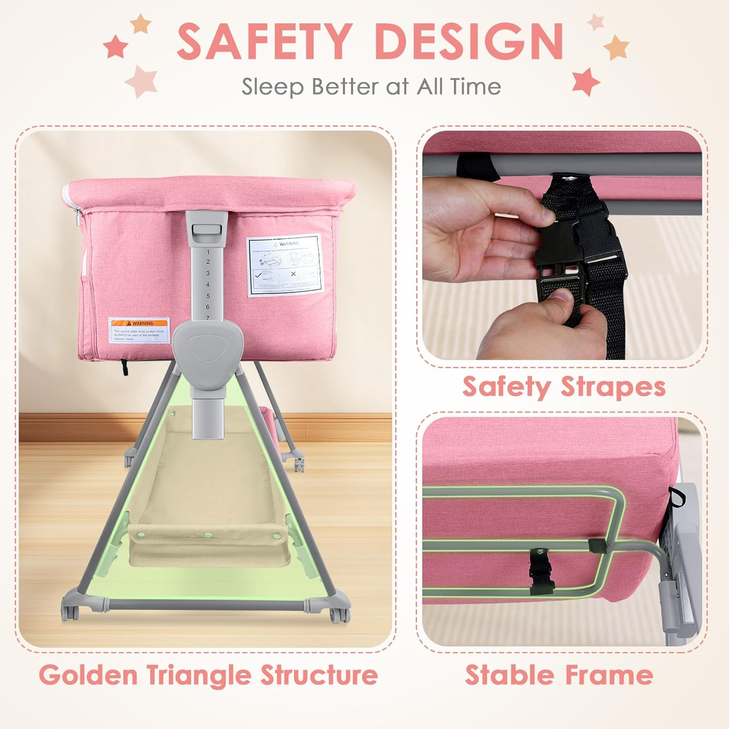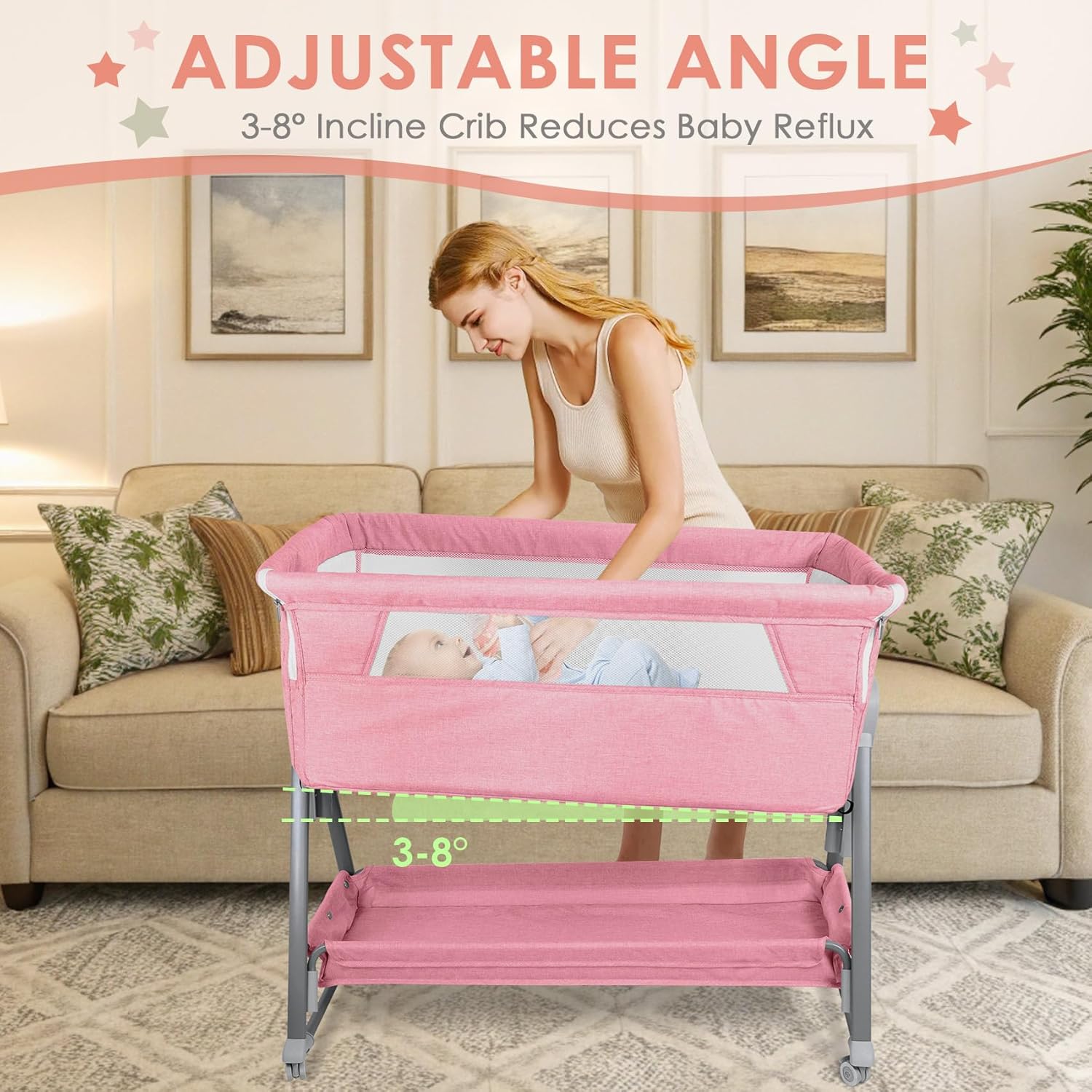 Easy to Move and Clean: Our bassinet bedside sleeper has four casters. If you want to move it, you need to lift one side 10-20 degrees to push the bassinet through the wheel. Besides, the sheet and side fabric is removable by zip-off, ensuring a clean and comfortable space for your little one to rest.