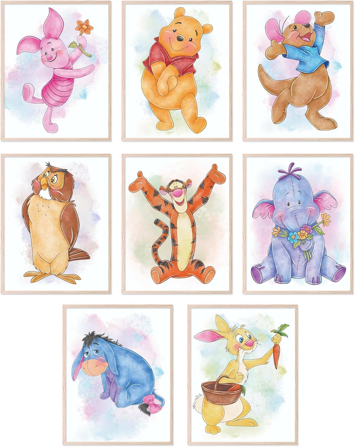 Nostalgic Winnie the Pooh Art: Transport yourself to the classic adventures with Pooh, Piglet, Eeyore, and Tigger. These prints serve as a beautiful reminder of the tales that have touched generations.