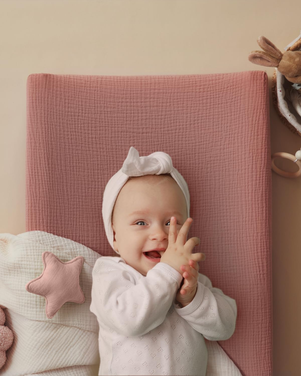 Muslin Cotton: Our changing pad covers girl are made of muslin cotton, with a smooth surface and comfortable touch,features a light drapability and rigidity, suitable for your baby’s delicate skin