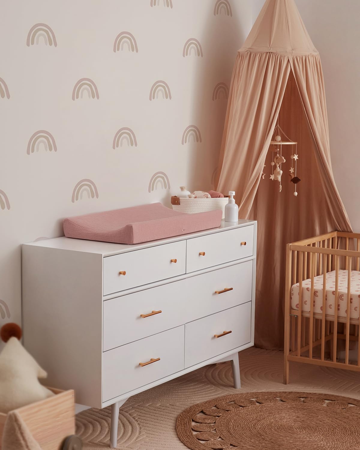 Muslin Cotton: Our changing pad covers girl are made of muslin cotton, with a smooth surface and comfortable touch,features a light drapability and rigidity, suitable for your baby’s delicate skin