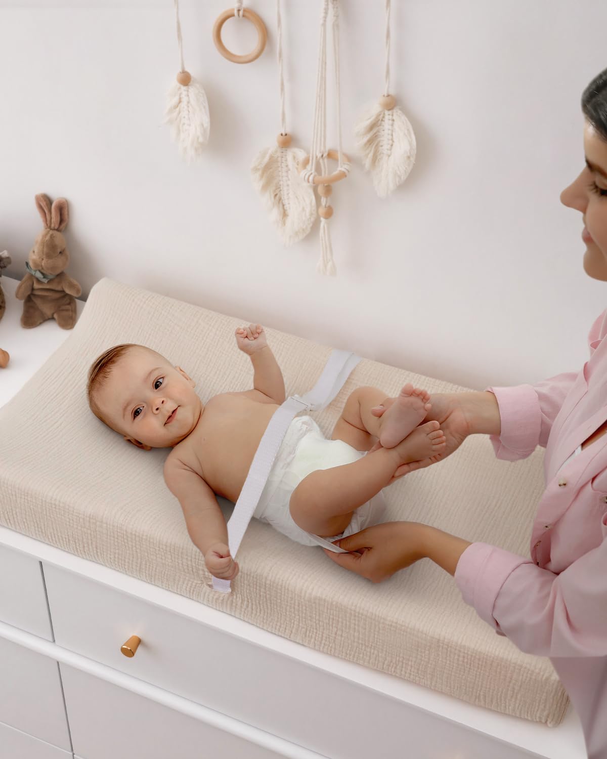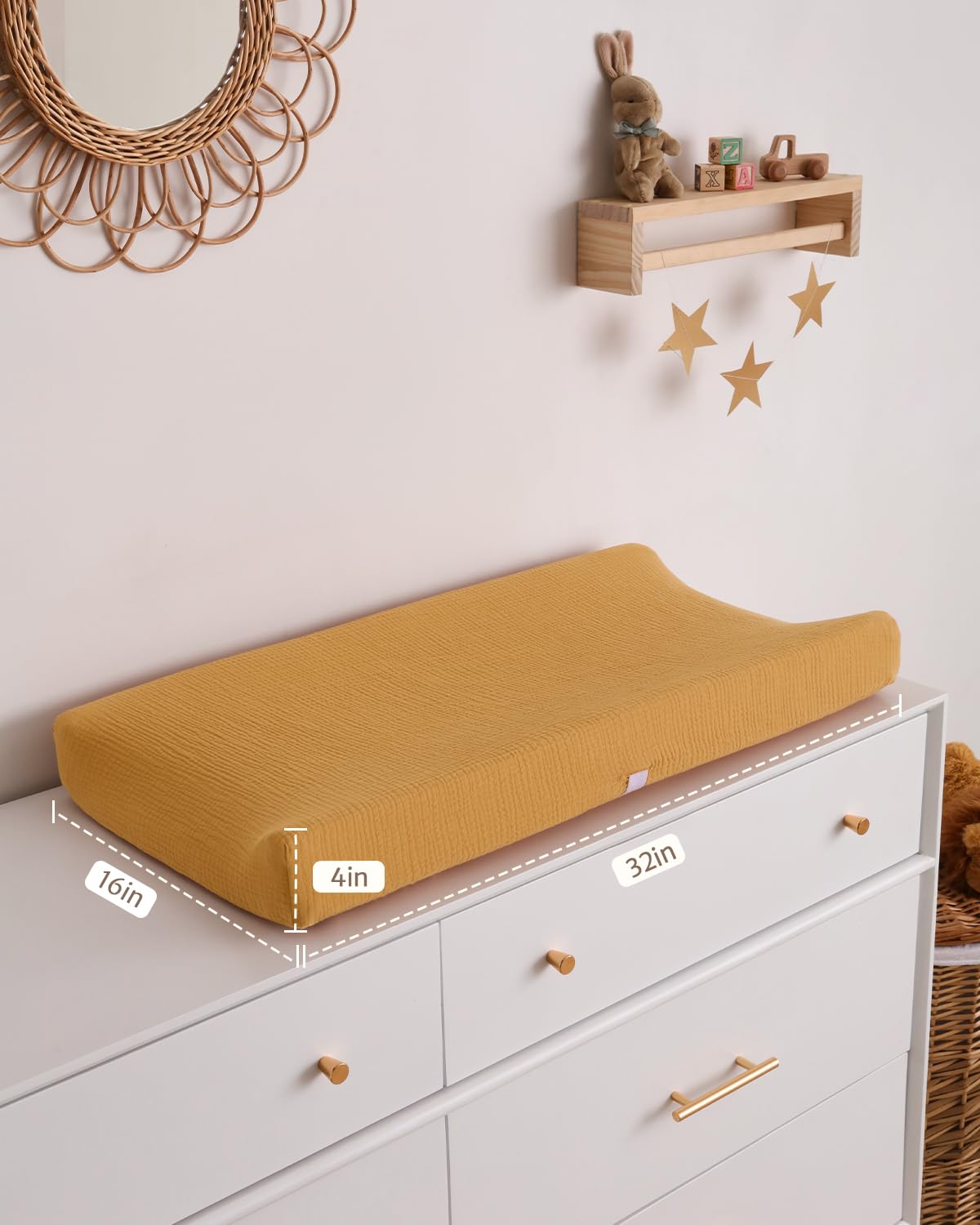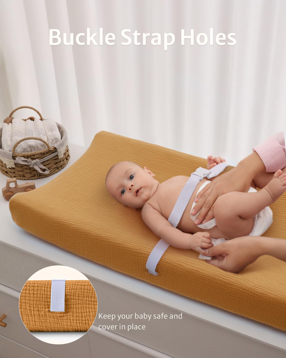 Muslin Cotton: Our changing pad covers girl are made of muslin cotton, with a smooth surface and comfortable touch,features a light drapability and rigidity, suitable for your baby’s delicate skin