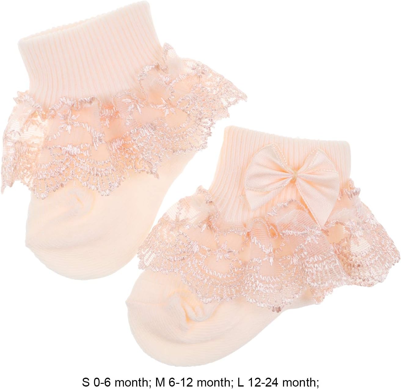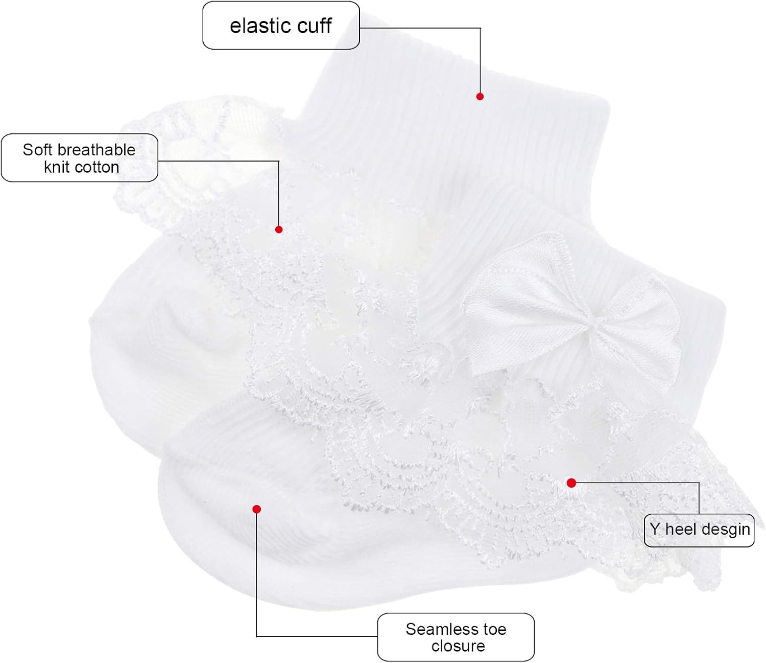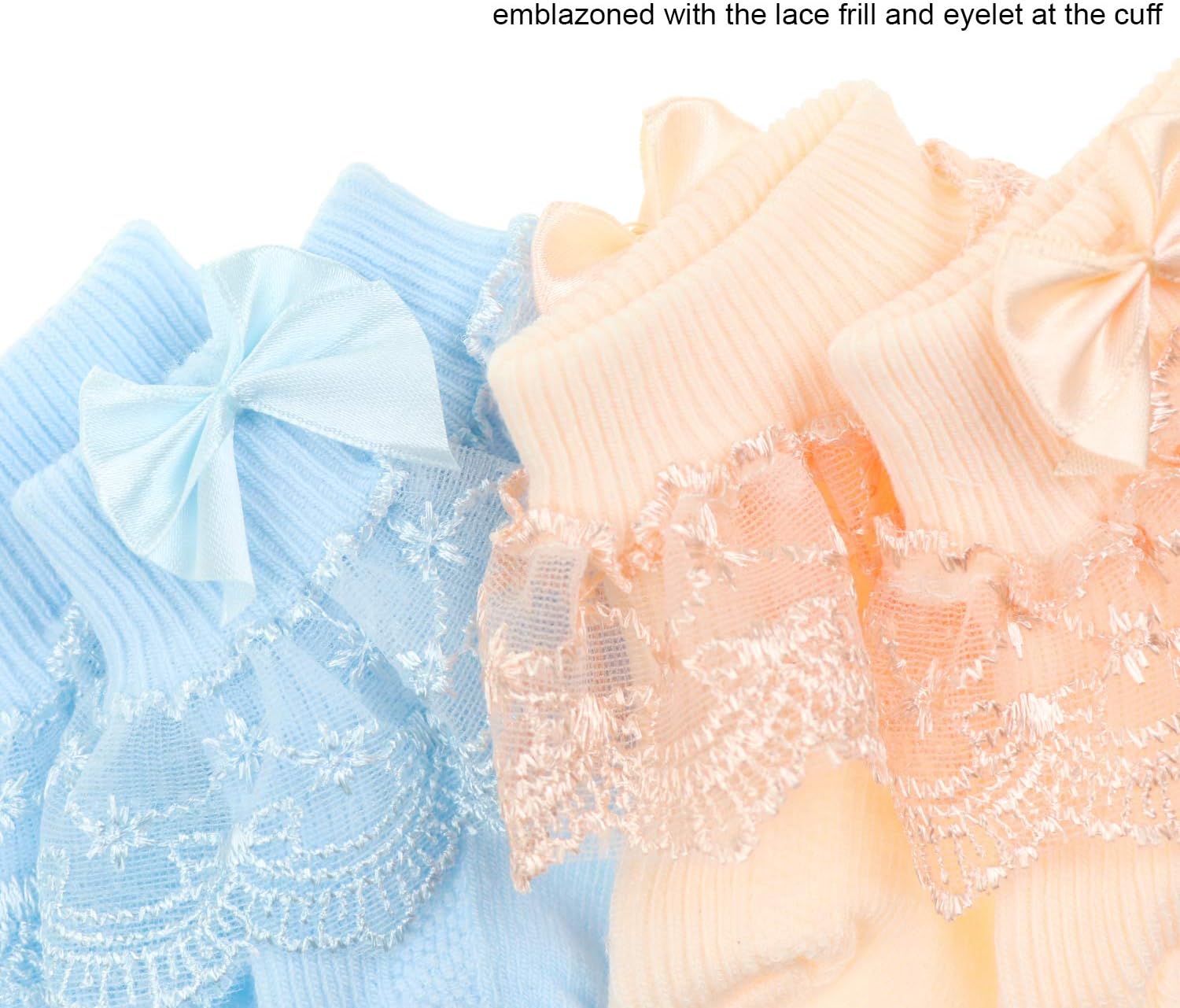 Featuring a lace frill and eyelet system at the outer cuff counter, these baby girl ankle socks from BQUBO are crafted from combed cotton-blend knit to ensure comfortable wear.