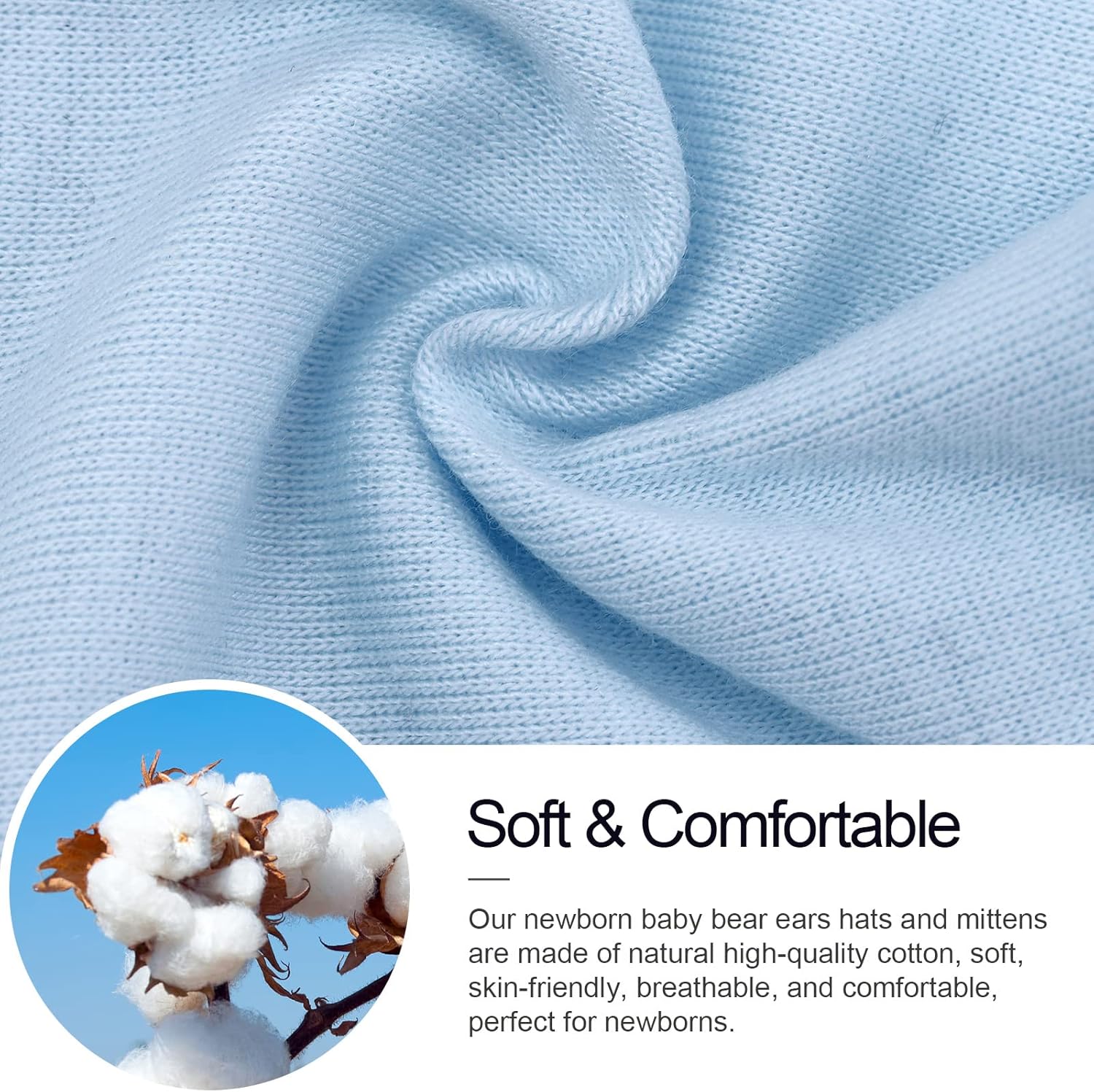 BQUBO Newborn Baby Bear Ears Hats and Mittens Sets Preemie Cotton Caps Baby Boy Girl Infant Hospital Beanie