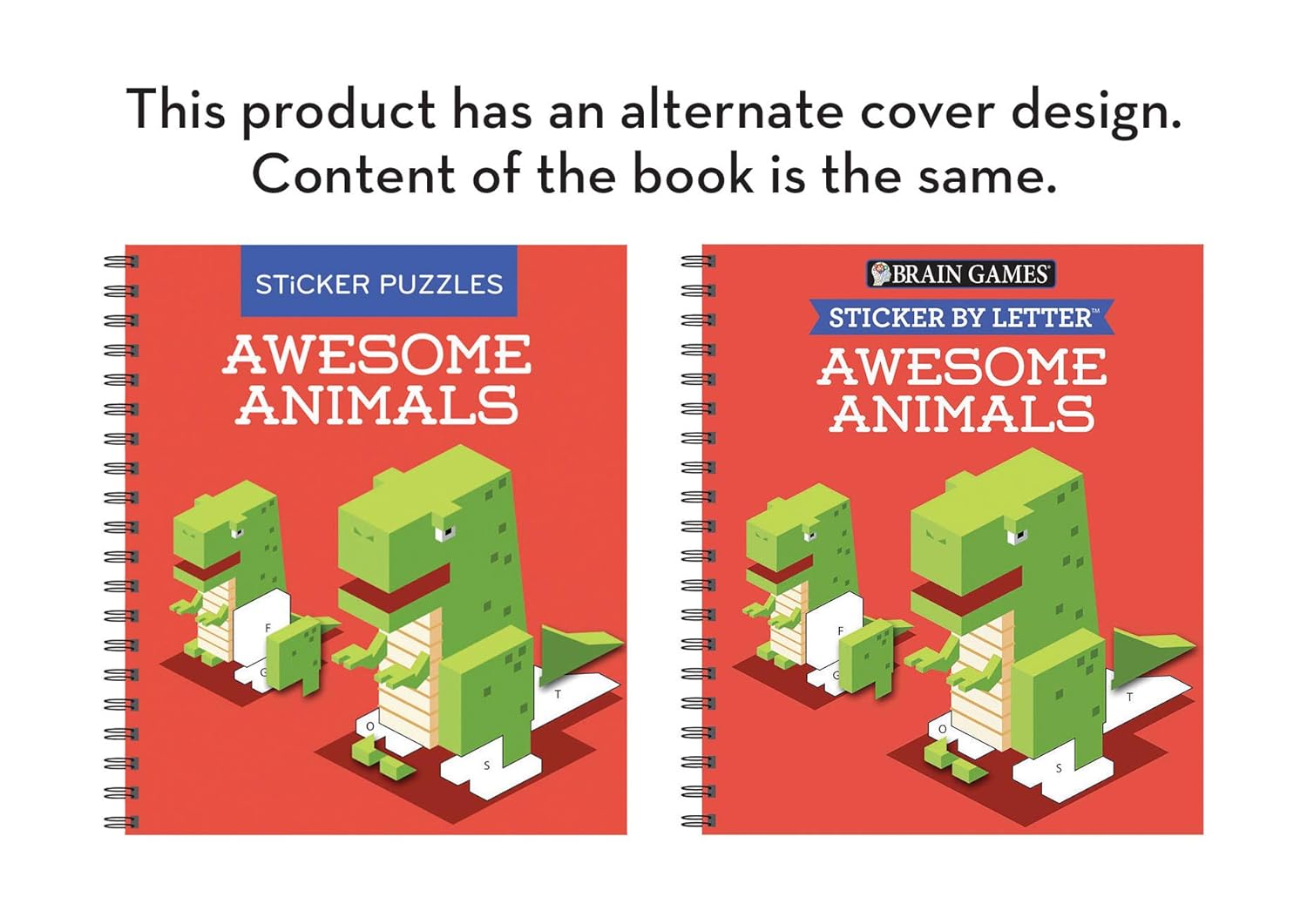 Brain Games Sticker by Letter: Awesome Animals is a compelling activity to keep your child’s brain engaged to create totally cool art.Includes 10 animal images to sticker by letter.Spiral binding and perforated pages make the book easy to use!Illustrations are targeted towards kids but all ages can enjoy!8 x 10 inch pages. Similar to color or paint by number, this sticker activity book features designs that are divided into spaces, each with a letter, that corresponds to a sticker. Find the sticker, peel it, and place it in the right space. Watch as a full colored image emerges from the original unfinished illustration.