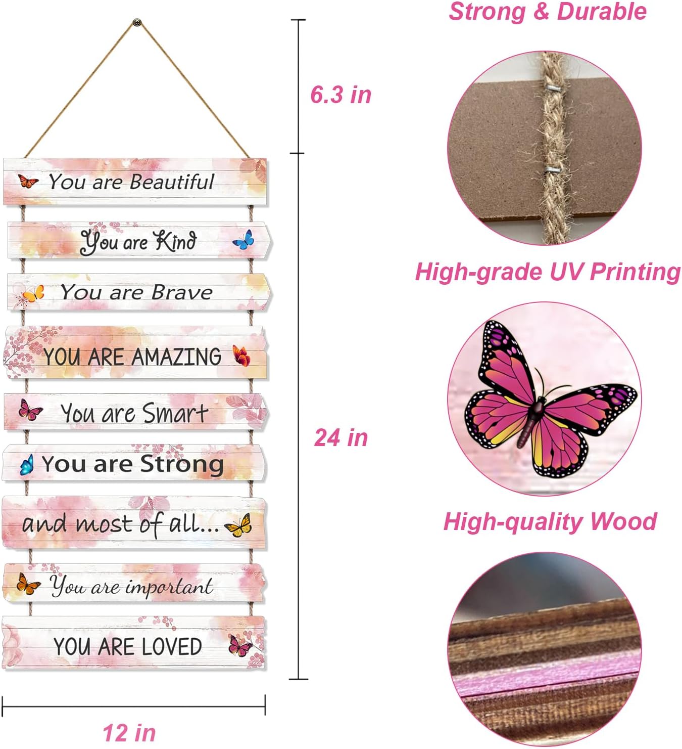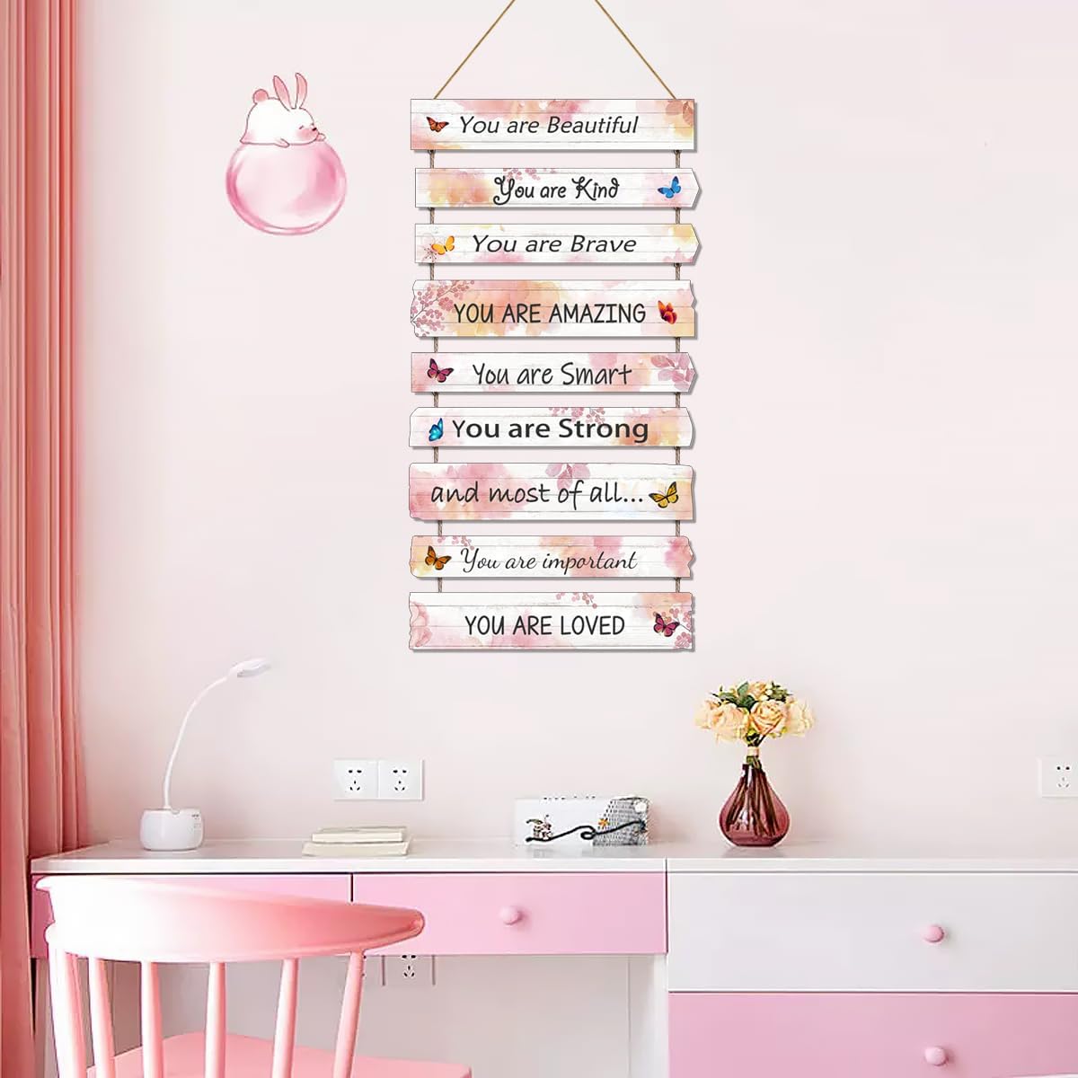 The girl room decor is printed with many warm and inspiring motivational words, [You are Beautiful, You are Smart, You are Important, You are Kind, You are Strong, You are Brave, You are Amazing, AND MOST OF ALL…, YOU ARE LOVED], which quietly encourage people, great for kids, teen girls, baby girl, toddlers, women.