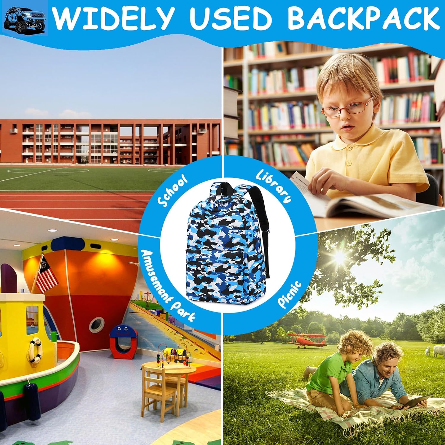 The kids backpack set with cute pattern printed, including girls boys backpack: 15″(L)x11.8″(H)*5.1″(W) , lunch bag: 10″(L)*7(H)*4.3″(W) , beautiful matching sets for kids boys girls to start school. (Recommended for children 3-9 years)