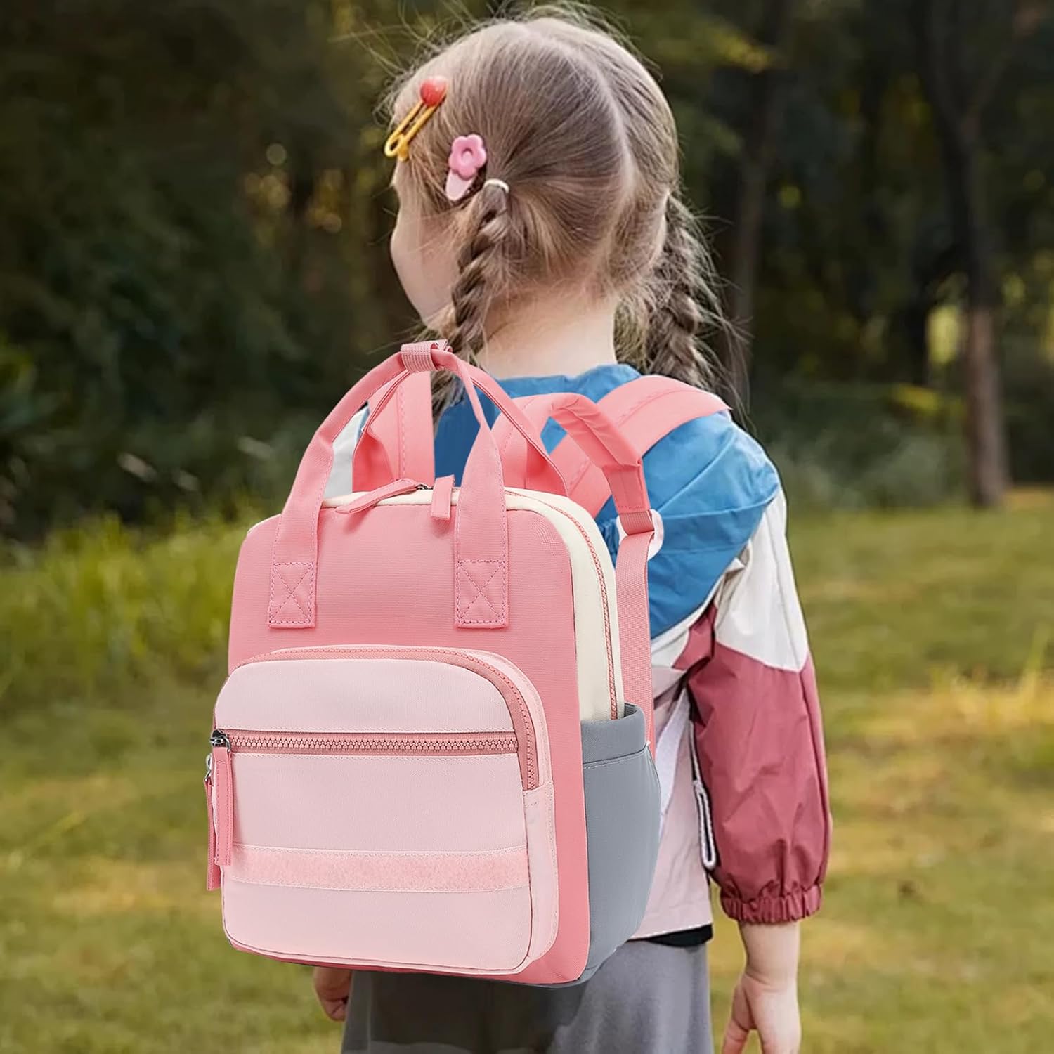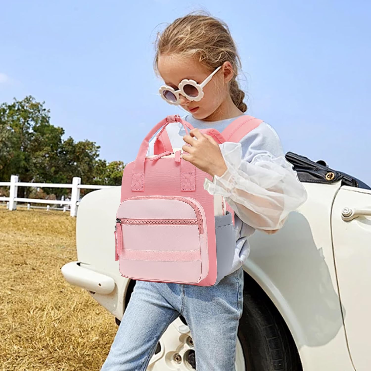 Mini but Roomy Compartment. Size: 11.4H*9.4L*4.7W, this small backpack is sized perfectly for a young child to carry on their own and can hold a good deal of things such as outfit change, diapers, wipes, snack containers, coloring books, crayons, a small notepad, hand sanitizer, and small toys.