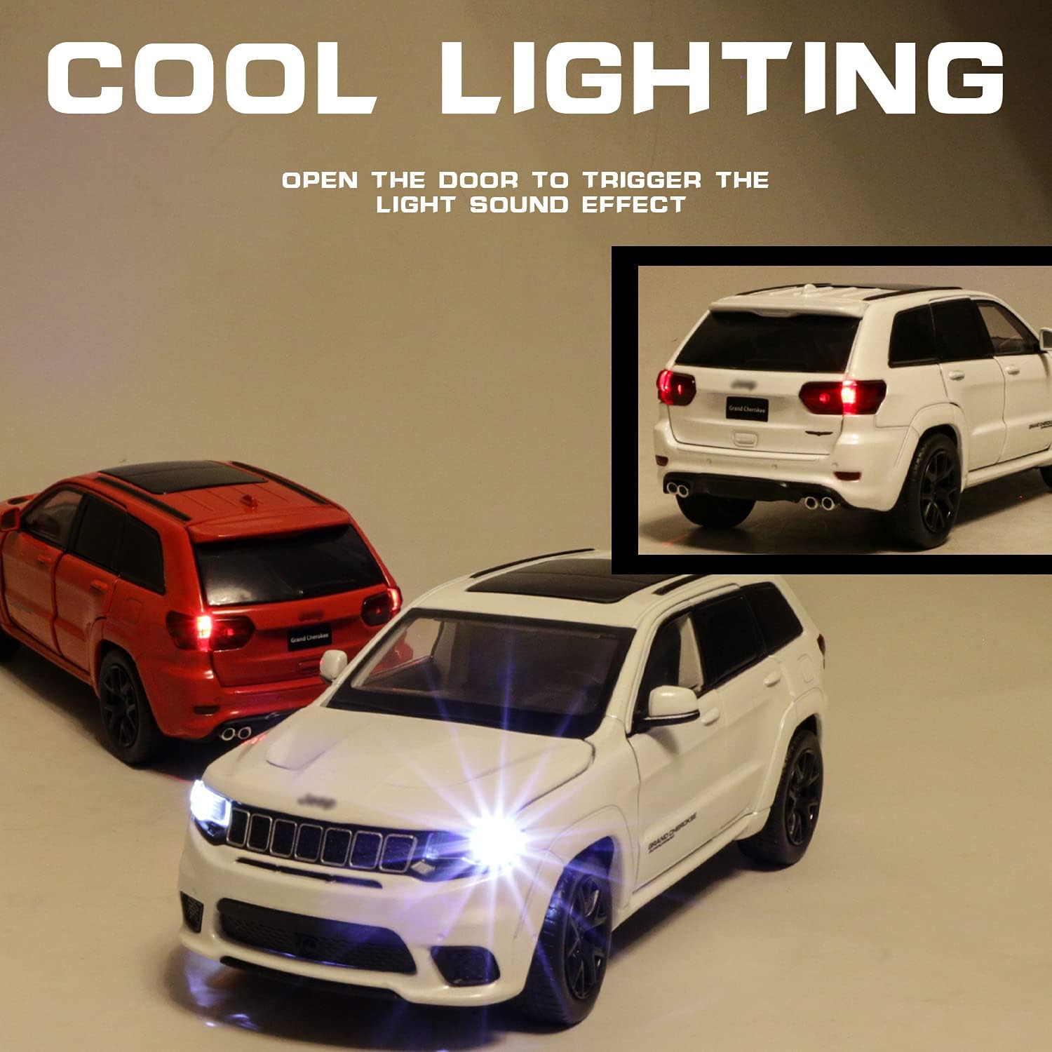 High Quality Material:zinc Alloy+Environmental protection ABS,rubber tire and solid structure.Grand Cherokee SIZE:6*2.56*2.16IN