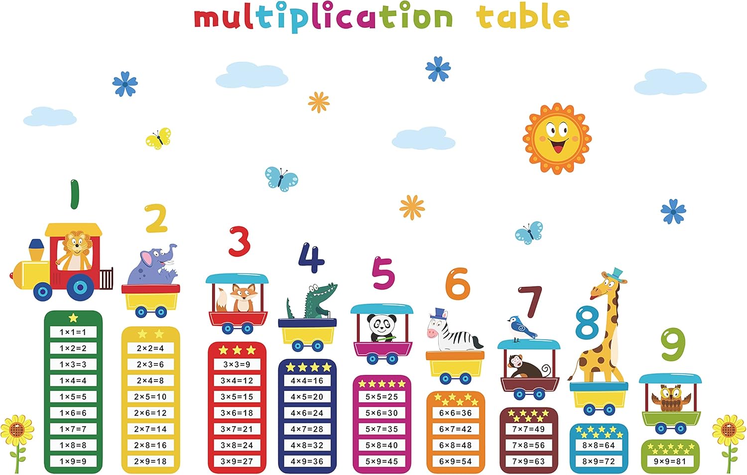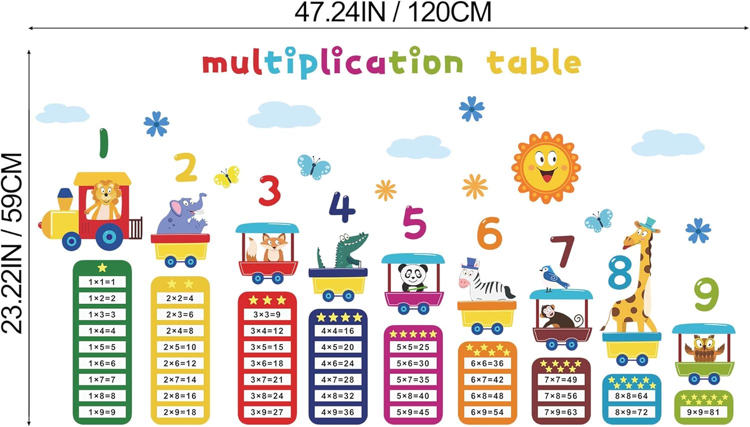 Funny and Study: With our colorful animal multiplication table wall decal, your child will become a fun activity. Bright colors, repeatable movement position, is a good helper to improve children’s learning,Colorful pattern design enhances the fun of children learning math. Can be used for posters on classroom walls. Fresh and colorful, designed to help students learn and remember multiplication formulas.