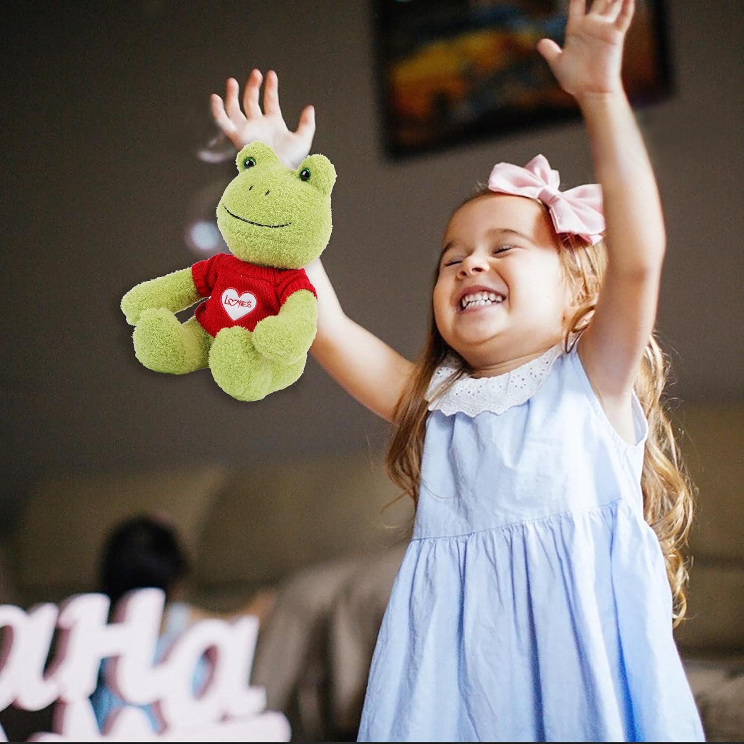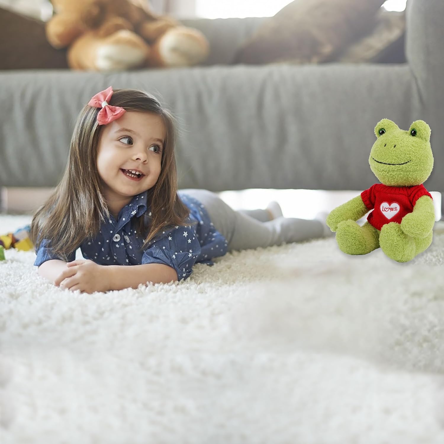 🐸GREAT DECOR & COMPANION – Not just a toy, this frog plushie also serves as a charming decorative piece for nurseries, bedrooms, or offices. Its cute design and vibrant red heart sweater add a touch of warmth and joy to any space.