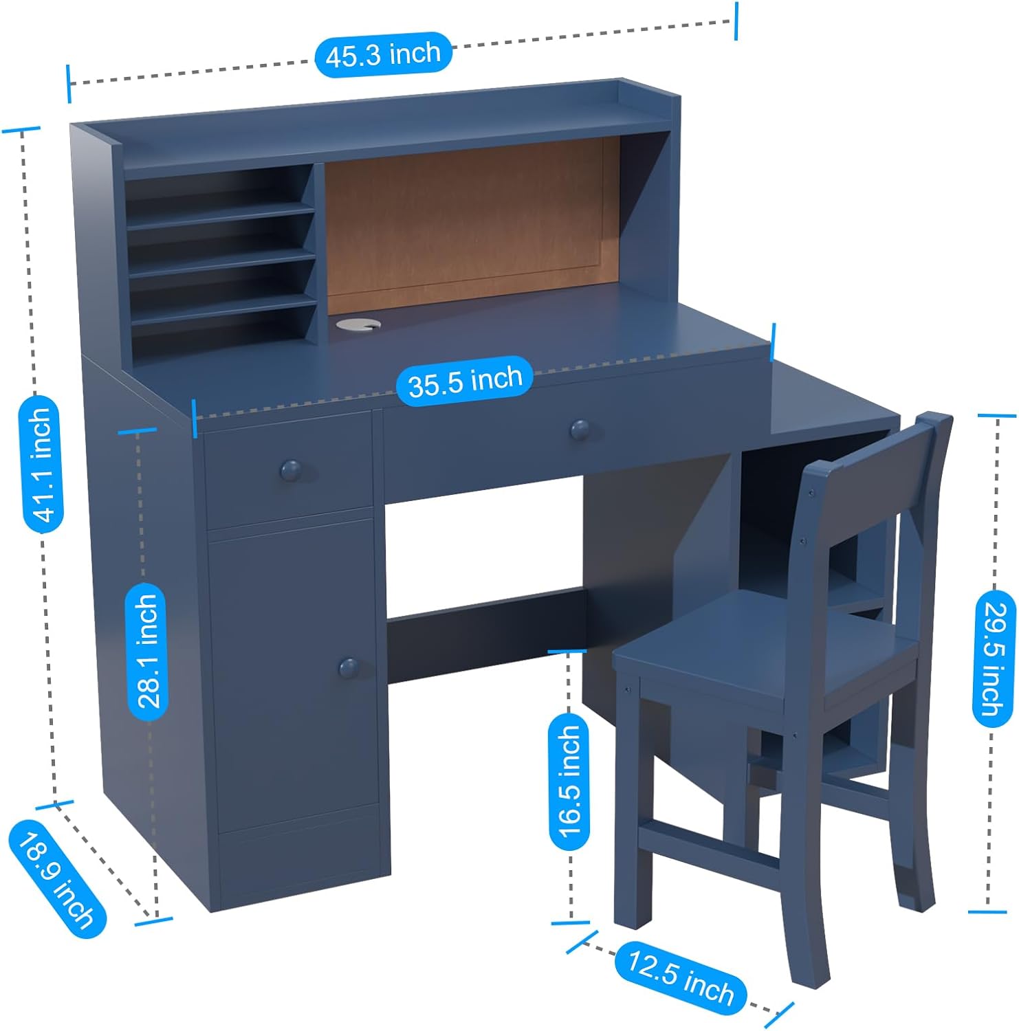 Our Study Desk Childrens with Bulletin Board, with Chair, Drawers and Cabinet offers a perfect place for working on art projects or finishing up their homework. The multiple storage options also help keep bedrooms tidy and organized, which mom and dad are sure to love. Features include. The desk offers you ample space to keep books, documents,and other things, suitable for adults and children.