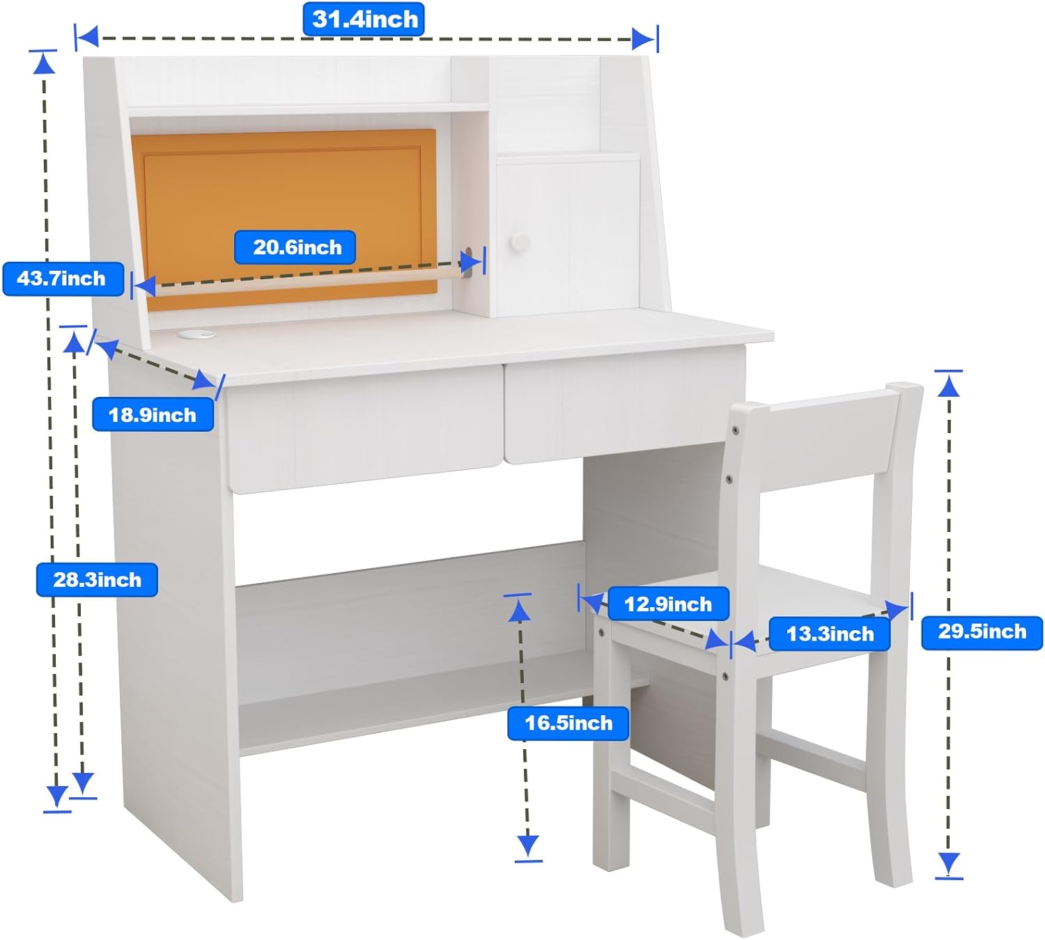【SIZE & EASY TO INSTALL】:The set includes a study desk and an adjustable chair. Desk size: 31.4″L x 18.9″W x 43.7″H, Chair size: 13.4″L x 13″W x 29.5″H. With its simple structure and all accessories included, it’ds convenient to install within a short time under the guidance of the manual provided in the package.-4pCOSc