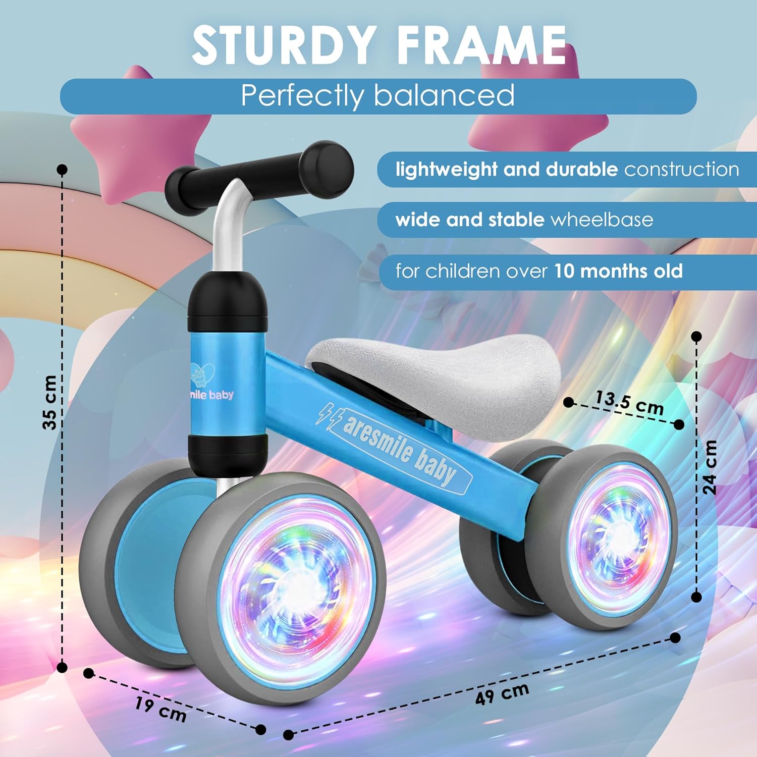 🚲Sturdy, Well-Balanced Frame – Our balance bike for toddler play is made with lightweight, yet durable construction with a wide, stable wheelbase base to help keep kids from tipping or falling over. Perfect for small children ages 10months and up.