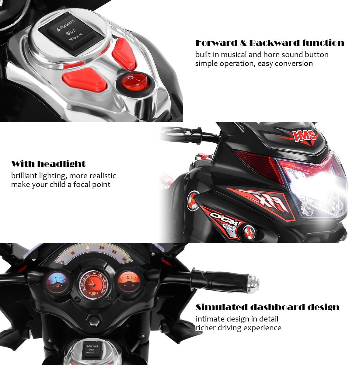 Multi-FUNCTIONS: 1. By pressing the built-In musical and horn button, your baby can listen to the music while riding. 2. Working Headlights make it more realistic. 3. Equipped with ON/OFF & Forward/Backward switches for easy ride. 4. The back storage compartment can be opened and you can put in suitable toys.