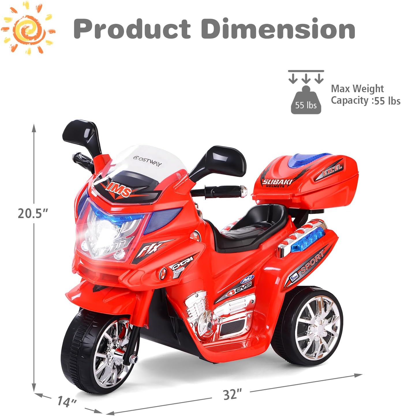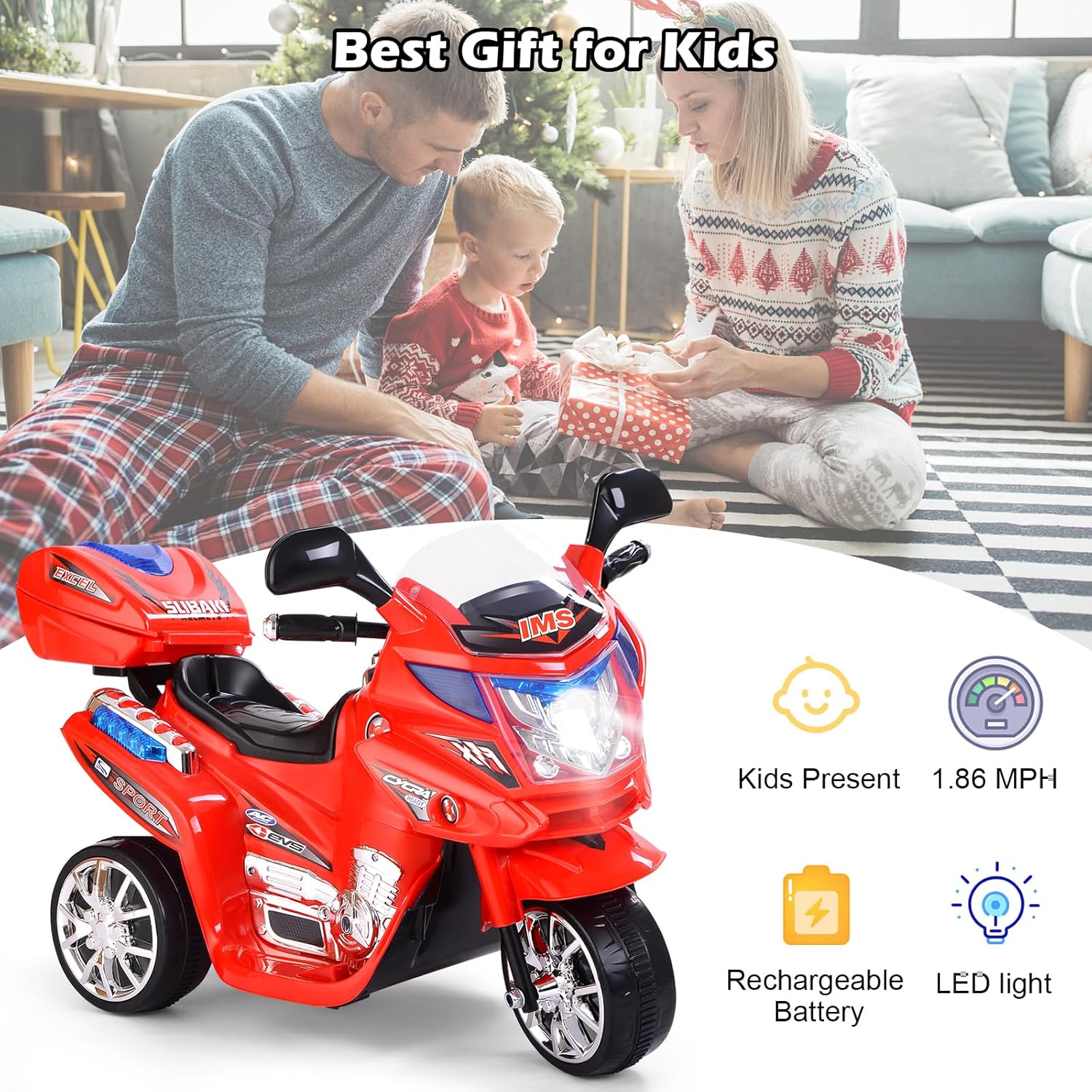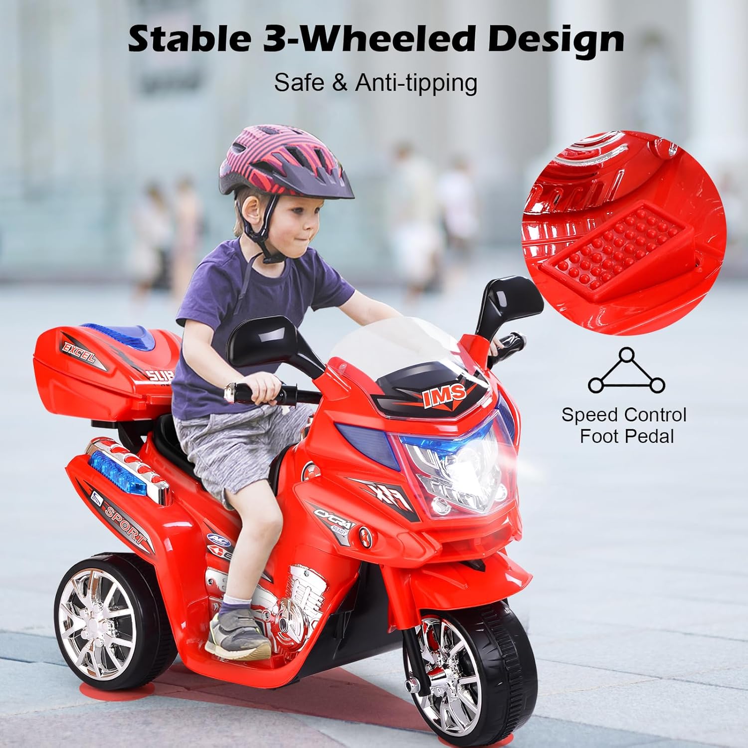 【Storage Trunk & Multi-functions】Our 3-wheeled motorbike for kids is an immersive experience offering functioning headlights and built-in music. Large capacity trunk for storing small toys for kids.