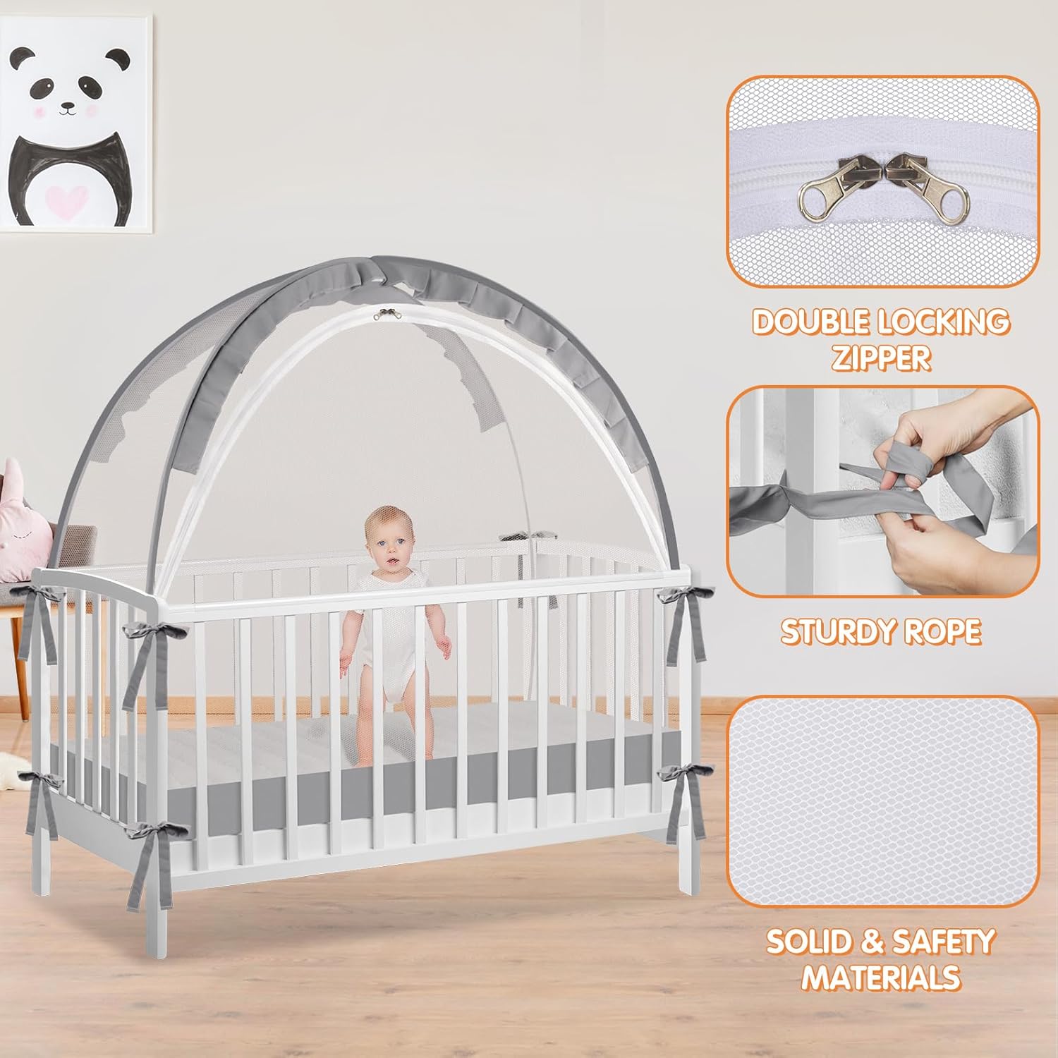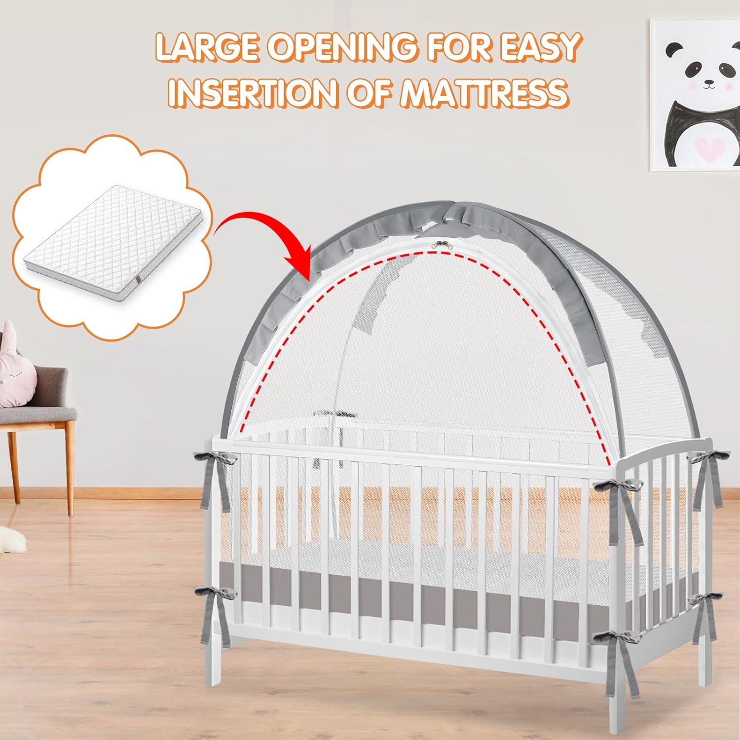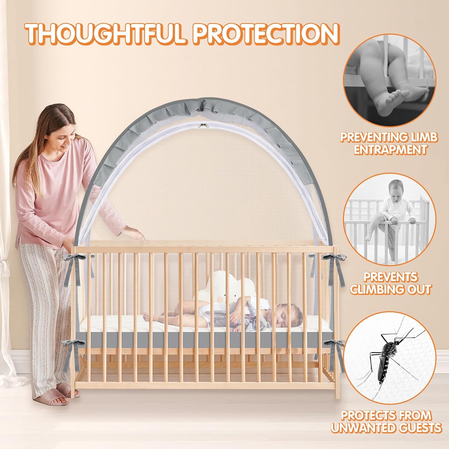 Crib Tent To Keep Baby From Climbing Out: Keep your baby safe and secure in the crib with our crib tent for baby cribs. This crib net to keep baby in not only prevents your baby from climbing out of the crib and falling, but also effectively prevents limbs from getting caught in the rails, giving parents more peace of mind.