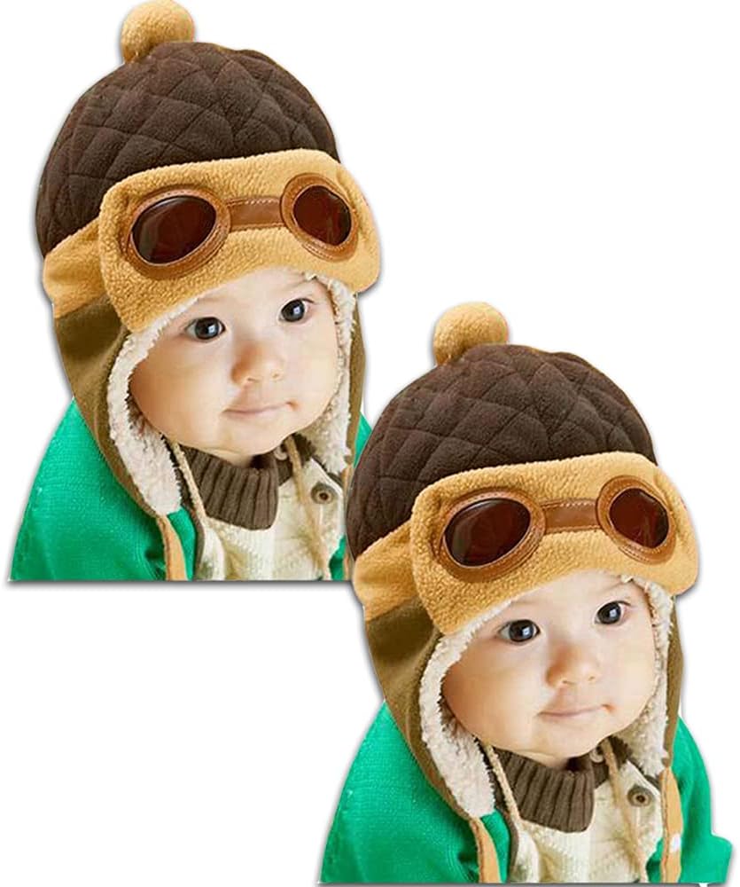 Crochet Earflap Pilot Hats Rabbit Ears Beanie Cap Winter Warm Knit Caps for Toddlers Baby Girls and Boys