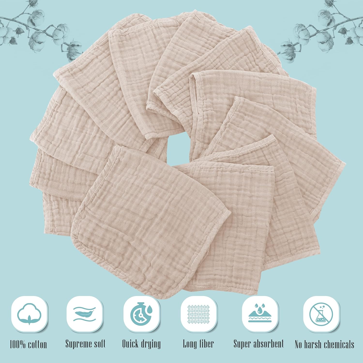 Cute Castle 12 Pack Muslin Burp Cloths for Baby – Ultra-Soft 100% Cotton Baby Washcloths – Large 20” by 10” Super Absorbent Milk Spit Up Rags – Burpy Cloths for Unisex, Boy, Girl – Brown
