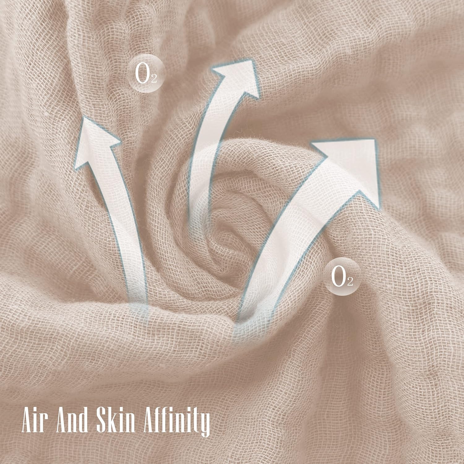 【MULTI-LAYER BREATHABLE STRUCTURE】 The fluffy structure of the cotton muslin fabric provides absorbs water and does not penetrate quickly effect.