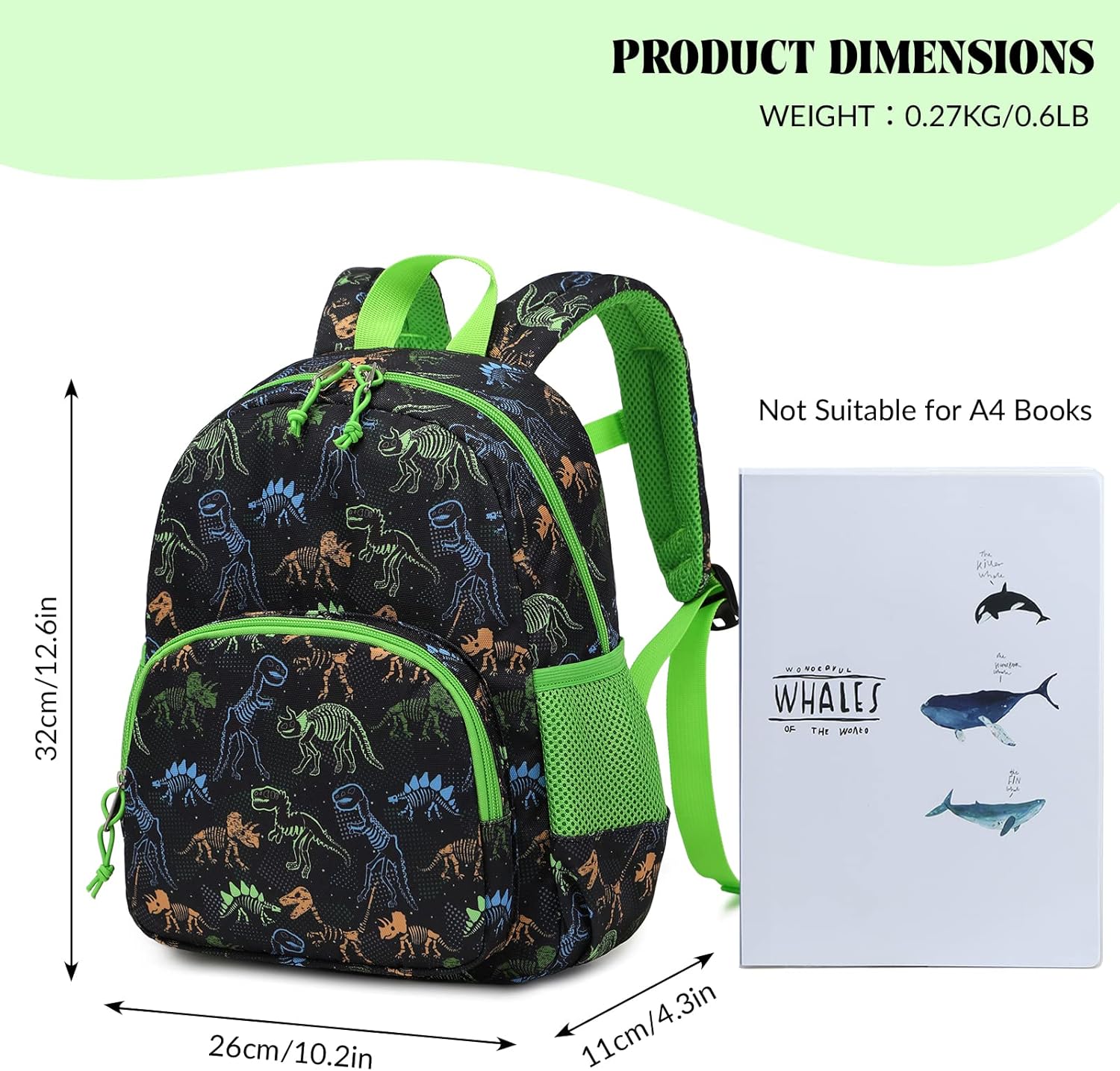 Dimensions: 12.6*10.2*4.3 Inch, Toddler Backpack for girls and boys, colorful and popular elements like unicorn, dinosaur, truck, excavator crane with chest strap and superior lining, perfect birthday / Christmas gift for kids whose age is from 1-6 years.