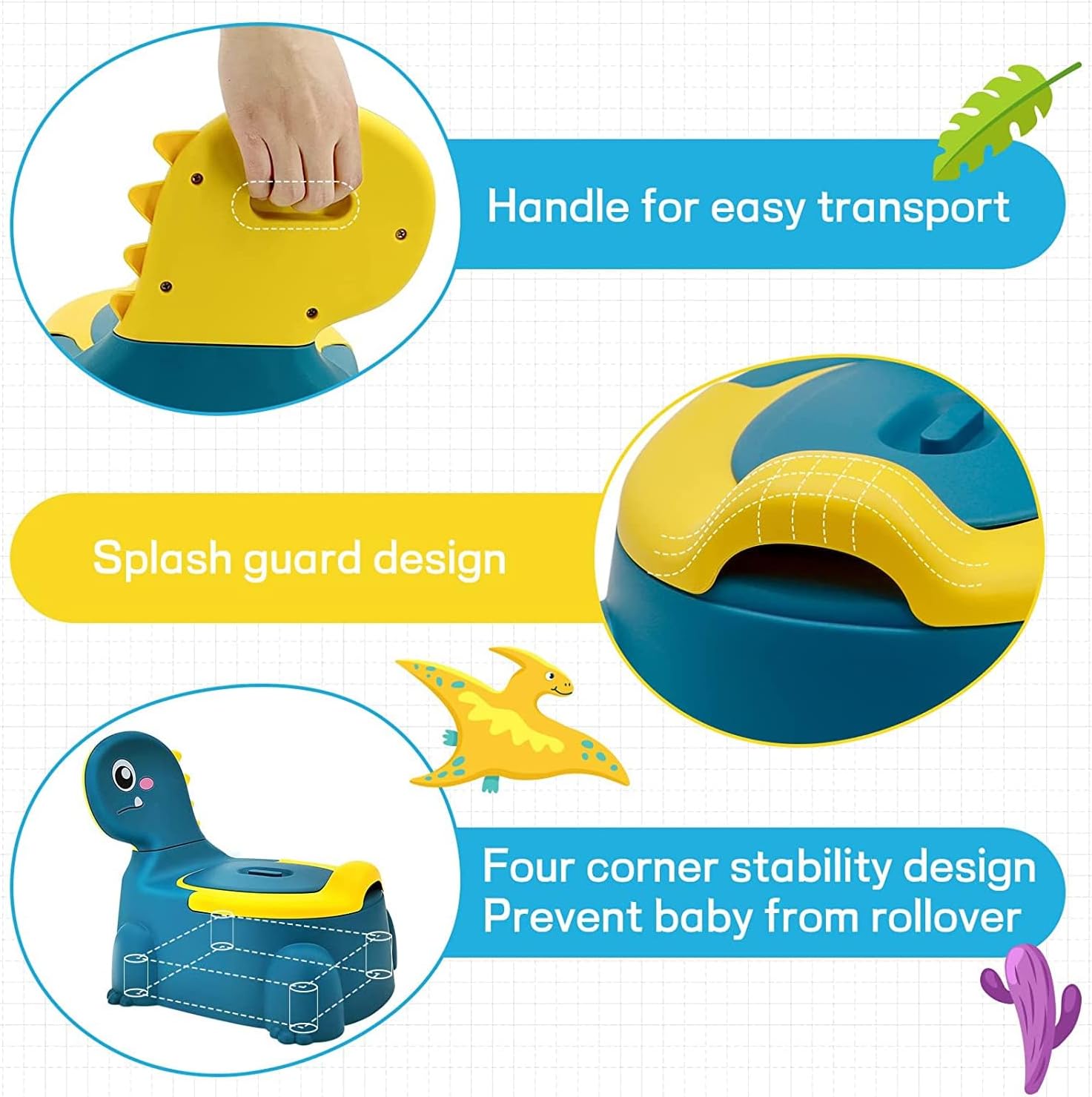 【Ergonomic Design】Baby potty has an ergonomic design of the backrest,preventing your baby from falling backwards and protecting their spine.Also the modern dinosaur style will get your kids’ love.