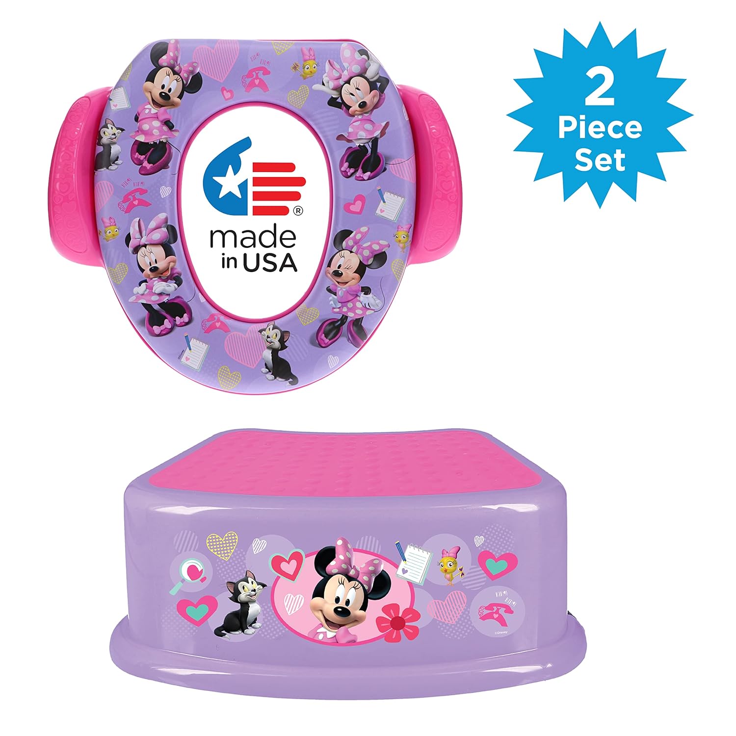 There’s no better way to tackle potty training than with the adorable Minnie Mouse! Minnie Mouse is happy to help guide your little one through every step of potty training with this Minnie Mouse 2 Piece “Happy Helpers” Essential Potty Training Set! This essential set includes everything your little one needs to master potty training with ease. The Soft Potty Seat features Minnie Mouse to keep your little one engaged and excited for potty training. For an added boost to the toilet or sink, the Step Stool is a must-have complement to your child’s new potty. Its lightweight design helps little ones gain independence reaching new heights around the house. With a skid-resistant base and non-skid surface texture on top, this stool ensures a secure footing with every use. All designs feature the fabulous Minnie Mouse, are well-constructed & built to last. The 2 Piece Essential Potty Training Set offers little ones fun & new ways to engage with their favorite characters!