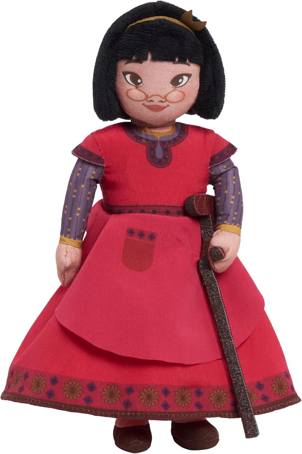 Soft and Cuddly: This beautiful, 7.5-inch Dahlia plush doll is made of super-soft mixed fabrics with printed and appliqued features. She wears a red dress and has a crutch, like Dahlia in the movie.