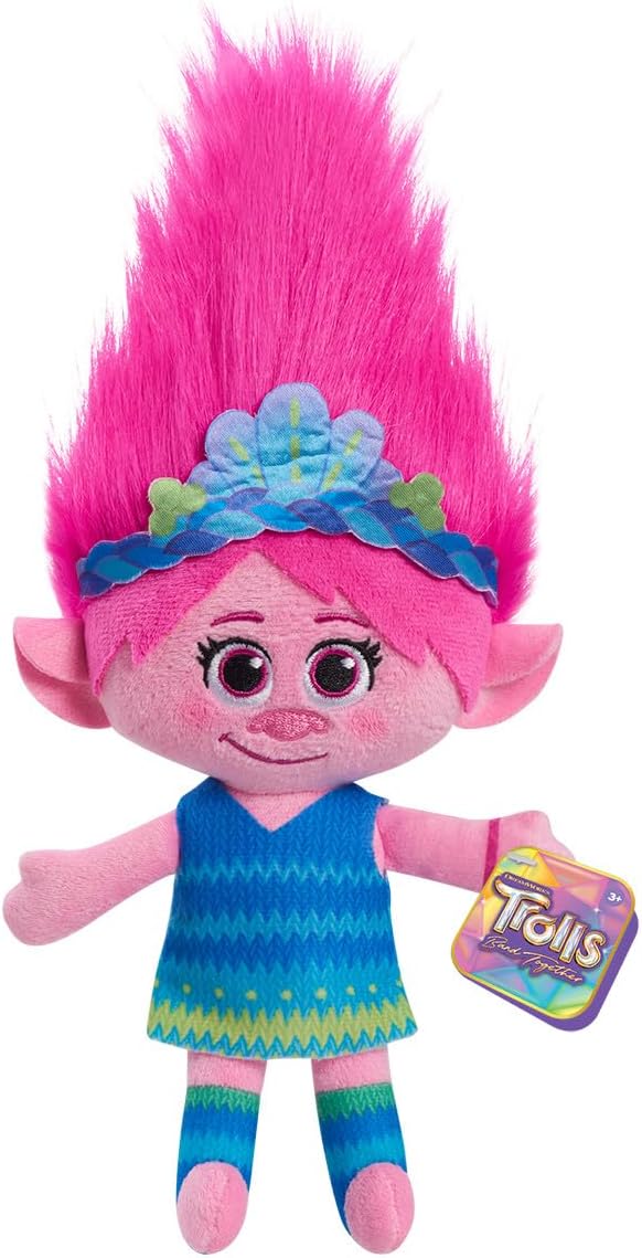 Get cuddly with the DreamWorks Animation’s Trolls Band Together Small Plush Set, featuring Poppy and Viva. Inspired by DreamWorks Animation’s mega-hit film Trolls Band Together, these cuddly, 8-inch tall plushies are made from super soft multi-textured fabrics and feature the Trolls’ signature tuft of colorful hair. They are sure to bring big smiles, lots of cuddles, and hug-tastic movie-inspired fun.tDreamWorks Animation’s Trolls Band Together Small Plush make delightful birthday and holiday gifts or anytime surprises for collectors, movie fans, and kids ages 3 years and up.