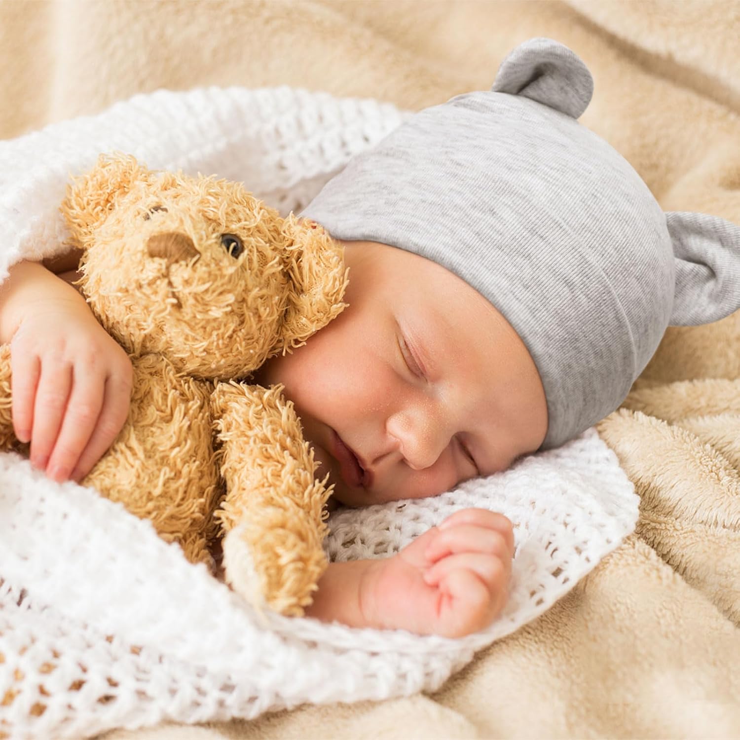 DRESHOW BQUBO 6 Pack Baby Beanie Hats for Unisex Infant Toddler Cotton Beanie Newborn Hospital Hat for Boys Girls 0-6 Months