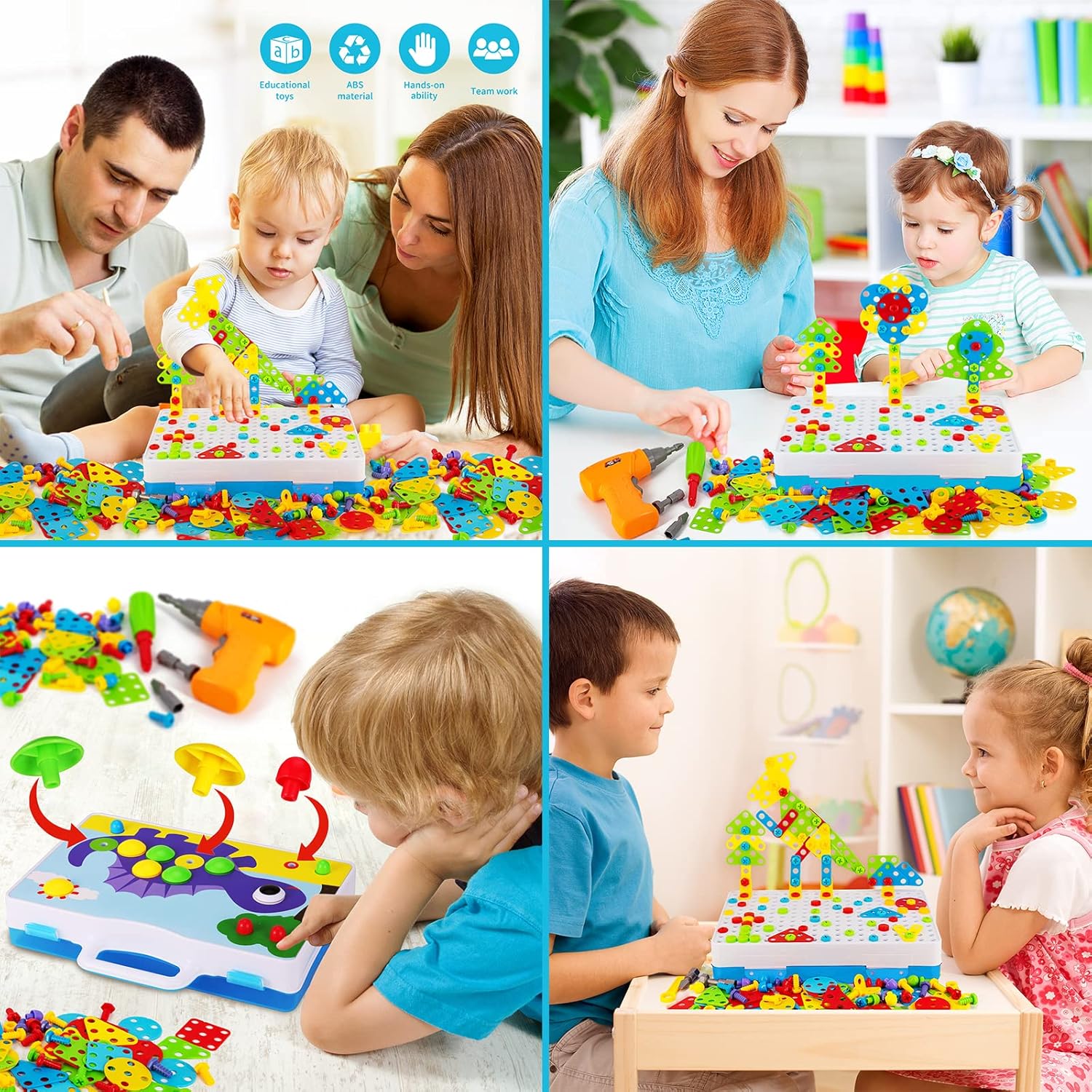【Gift A Fun And Educational Toy】We believe in making toys mosaic puzzle toy with electric drill,that are both fun and educational. They are made of premium quality plastic; they are BPA free and nontoxic as well. Surprise your kids at their next birthday party. These kids toy drill are ideal for boys and girls.
